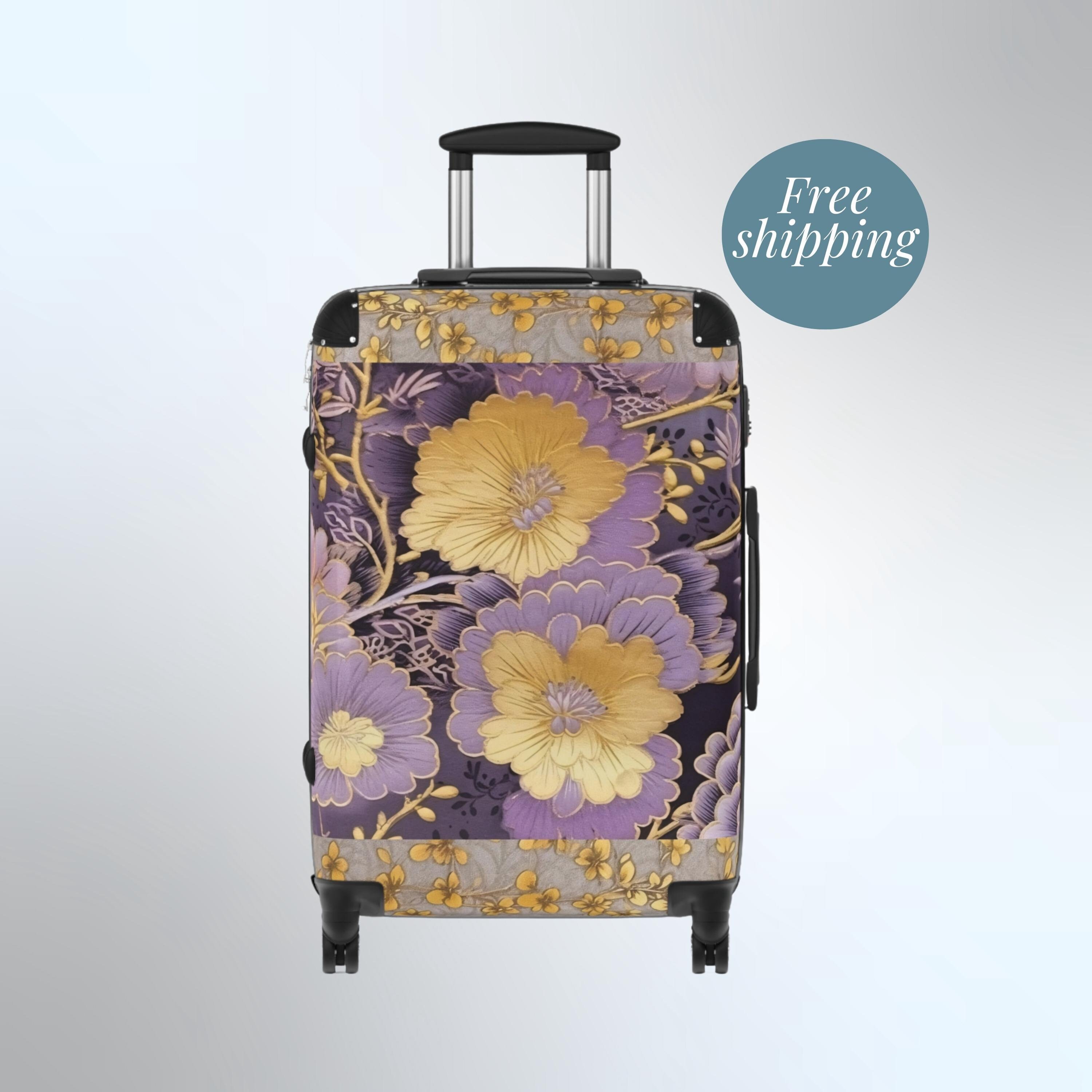 Custom Travel Luggage Purple Flowers Carryon Gold Flowers Luggage S...
