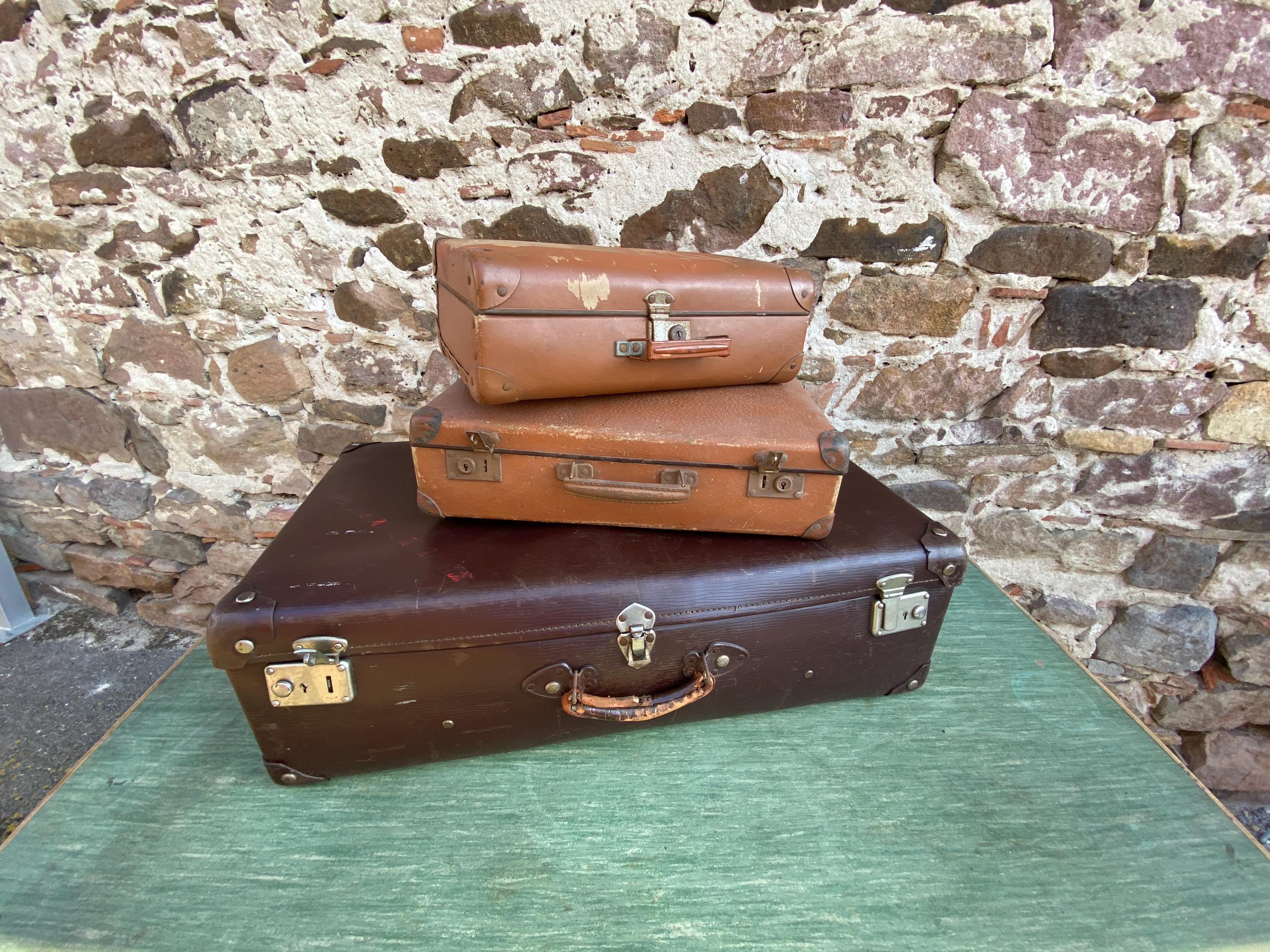 set of 3 french vintage suitcase condition with wear consistent with age and use.