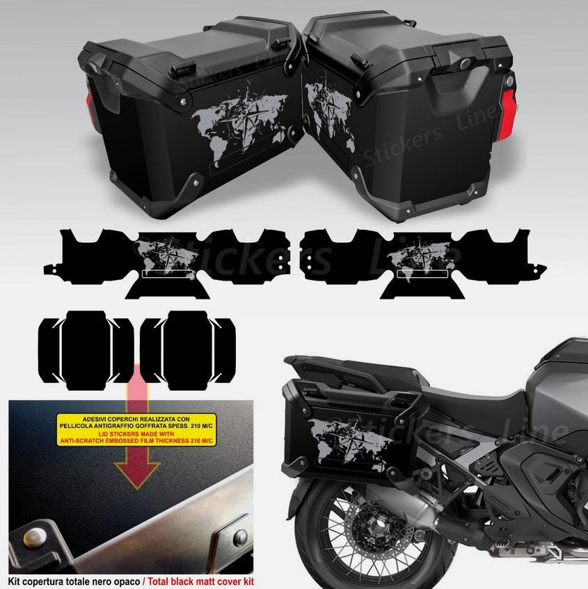 "COMPLETE cover kit compatible stickers for the 2 BMW R1300 GS side cases - Style: Triple black...