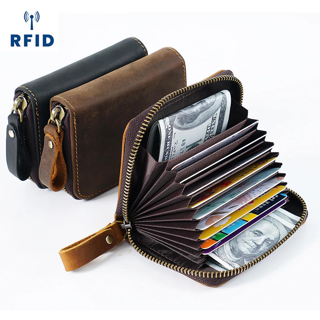 Multiple Card Slot Zipper Full Grain Leather Card Cover Case Genuin...