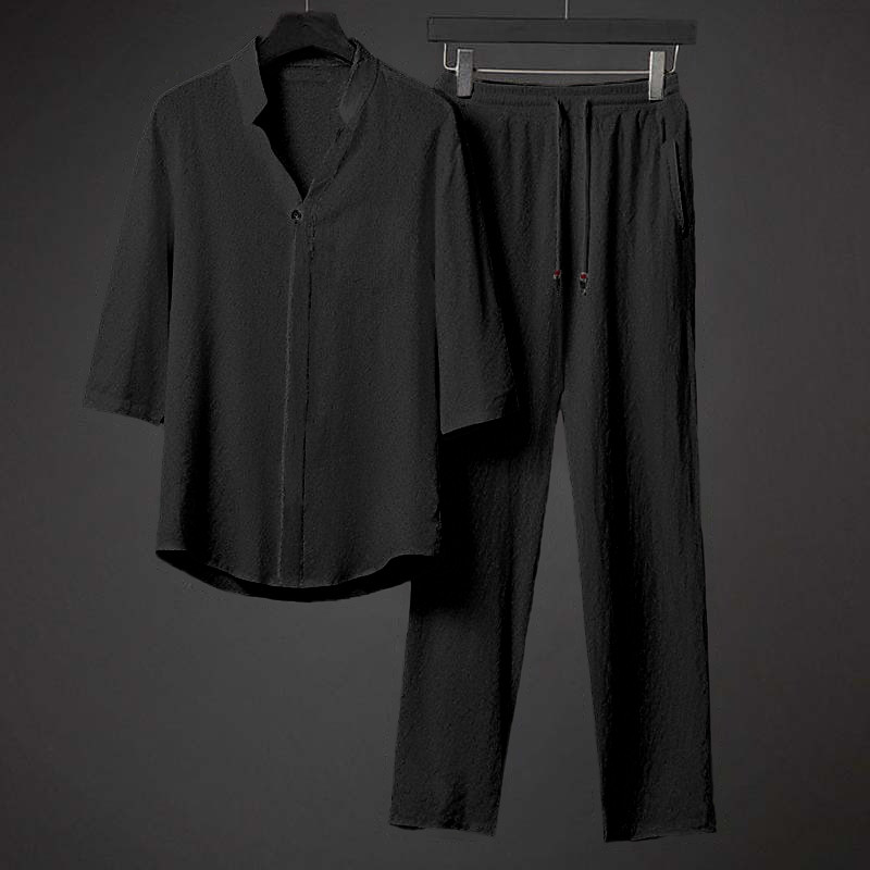 Men's Band Collar Shirt 2 Piece Shirt Set Summer Set Matching Sets ...