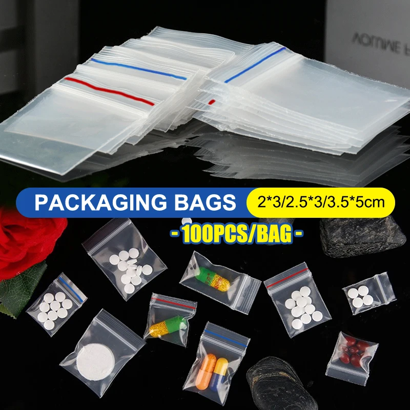 100Pcs/Bag PE Plastic Packaging Bags Ziplock Bag Pill Packaging Bag...