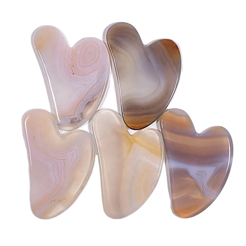 DIY 100% Natural Grey Agate pink Massage Guasha Tools Facial Massag...