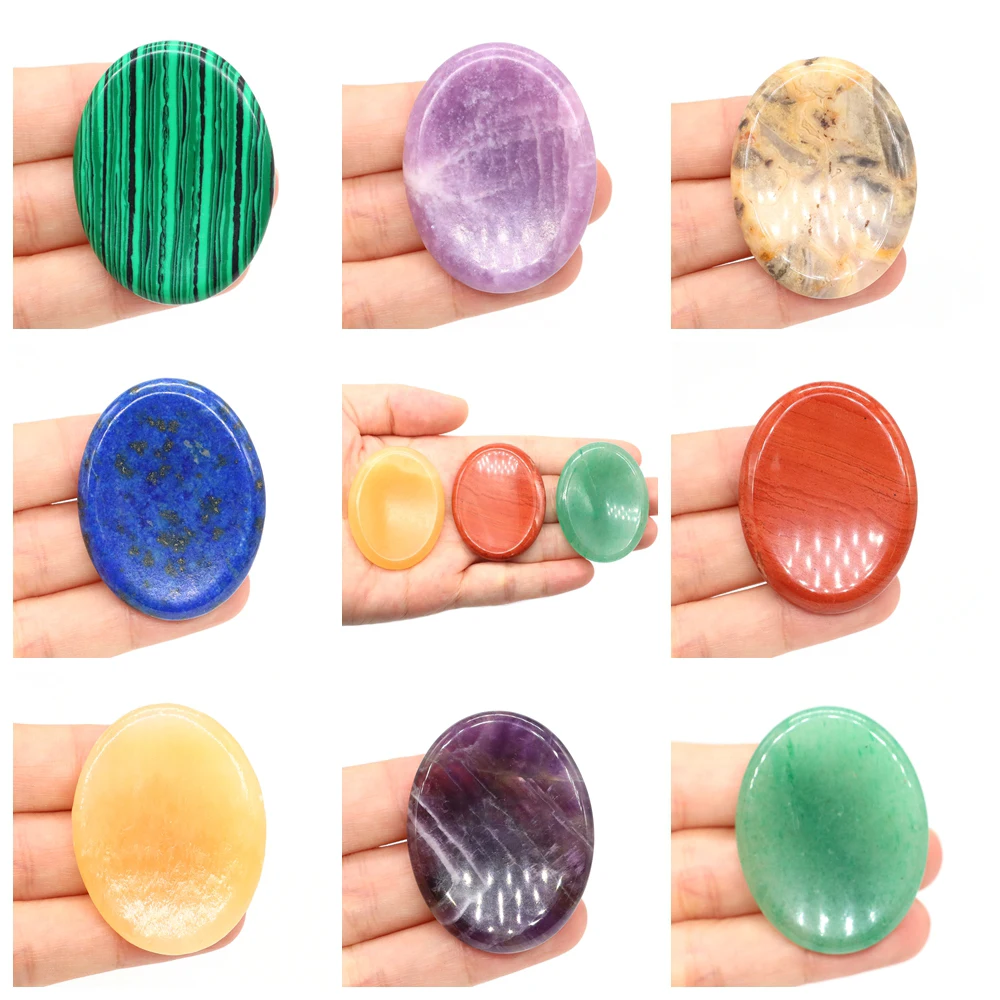 Wholesale 35x45mm Thumb Forget Worry Stones Oval Massage Quartz 7 Chakra Crystal Healing Reiki Energ...
