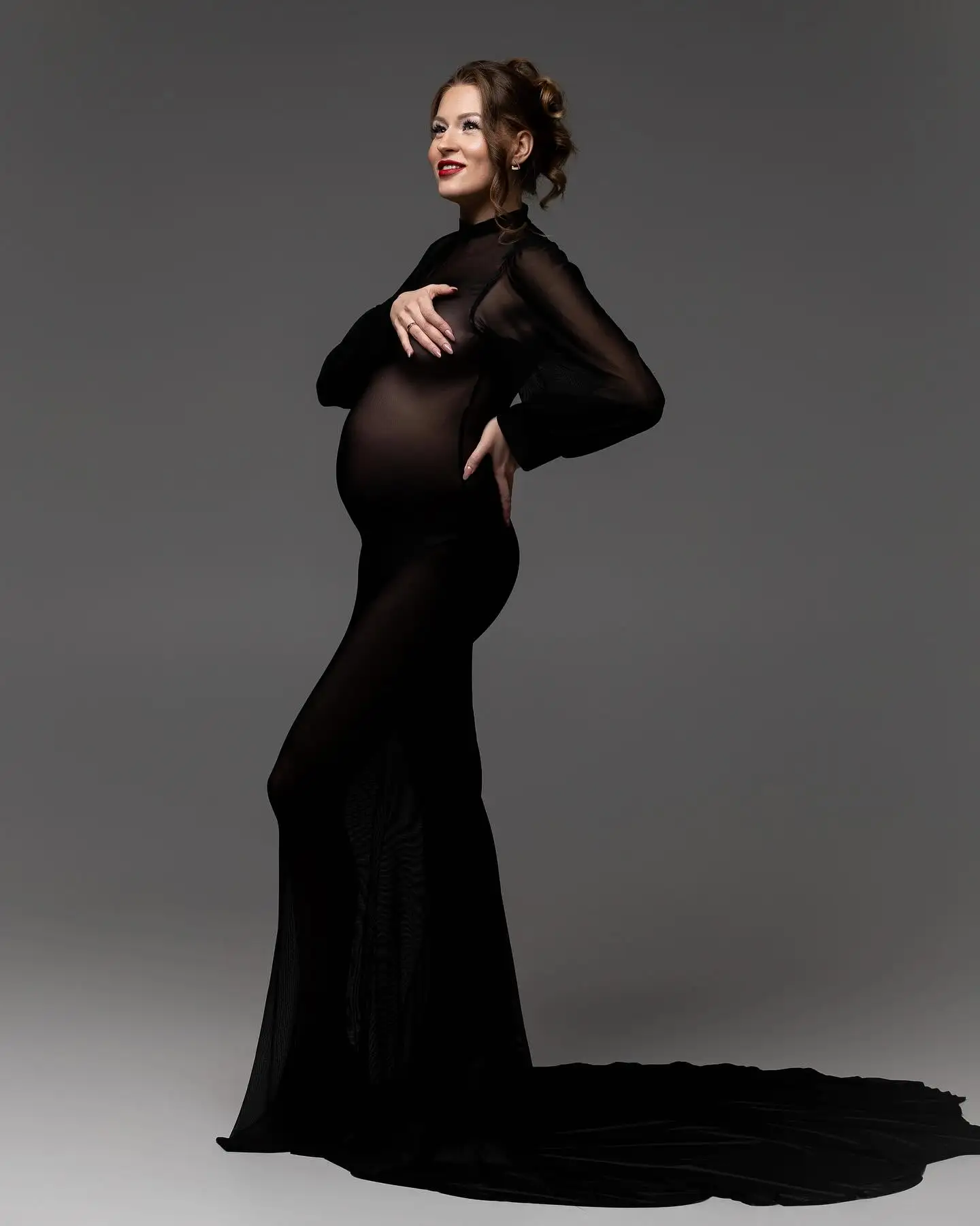 • Maternity Photography Dresses High Neck Long Sleeved Fashionable Pa...