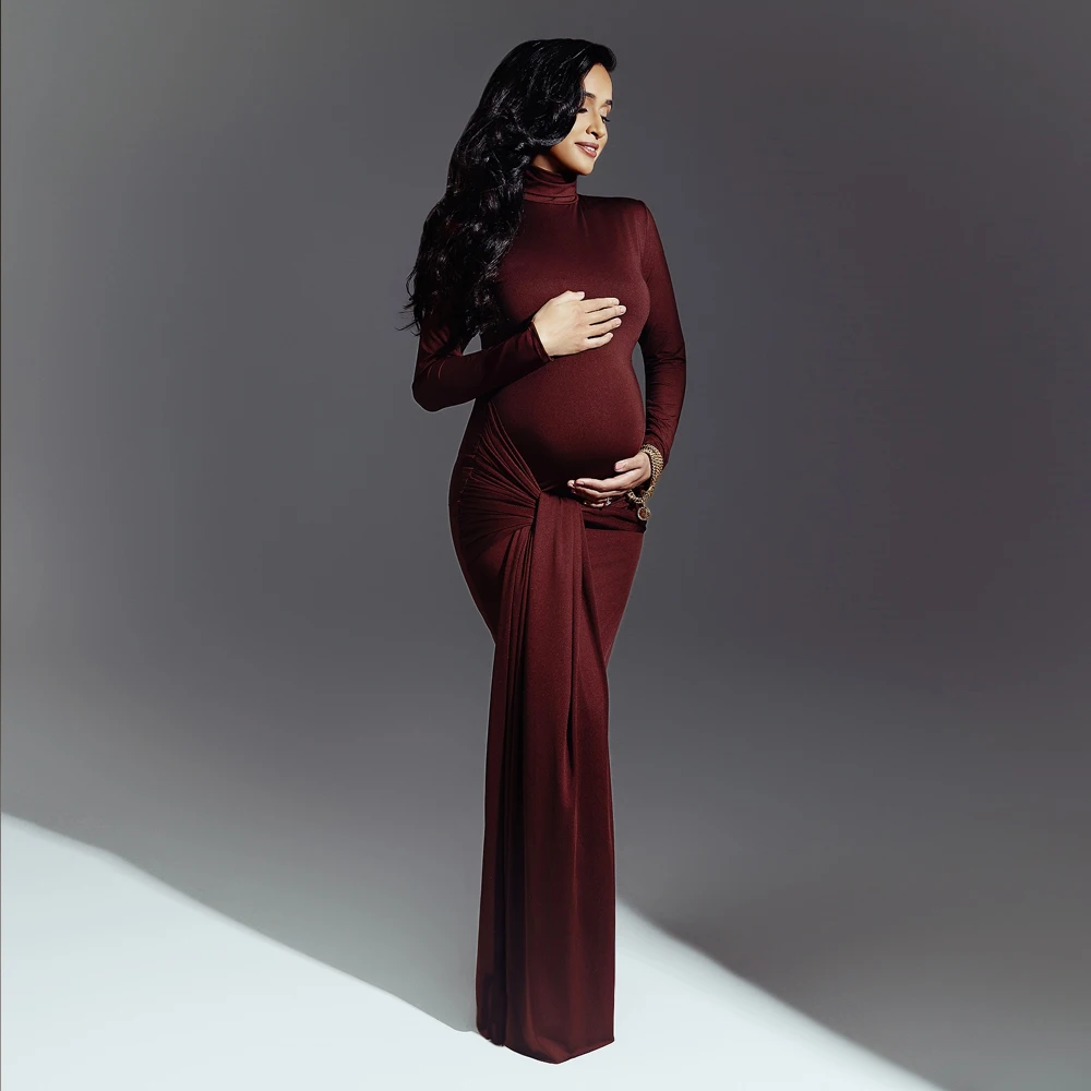 • Women Pregnancy Photoshoot Maxi Gown Elegant Batwing Sleeve Bodycon...