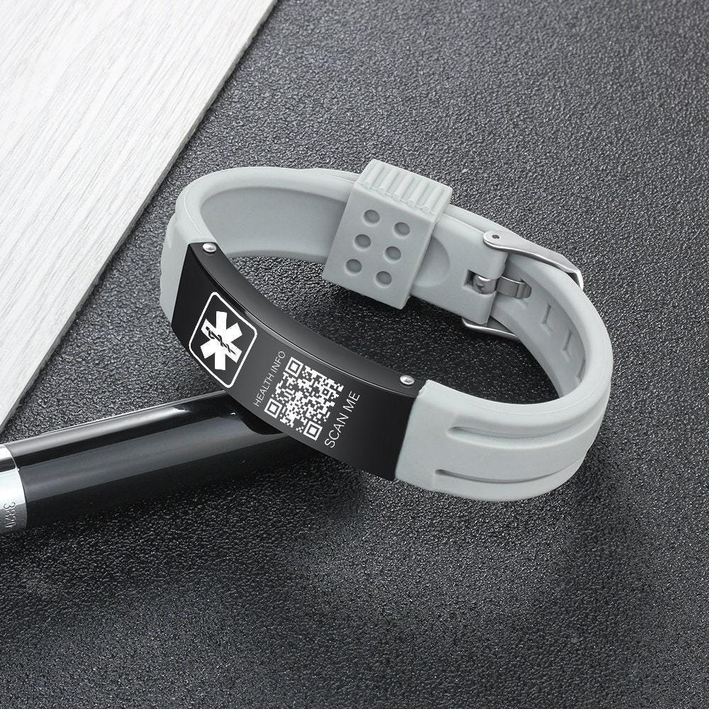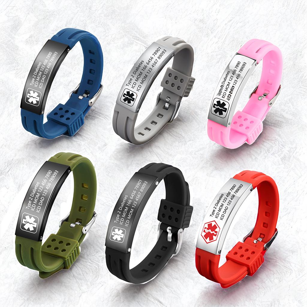 Medical Alert ID Bracelet, Waterproof Adjustable Silicone Bracelet ...