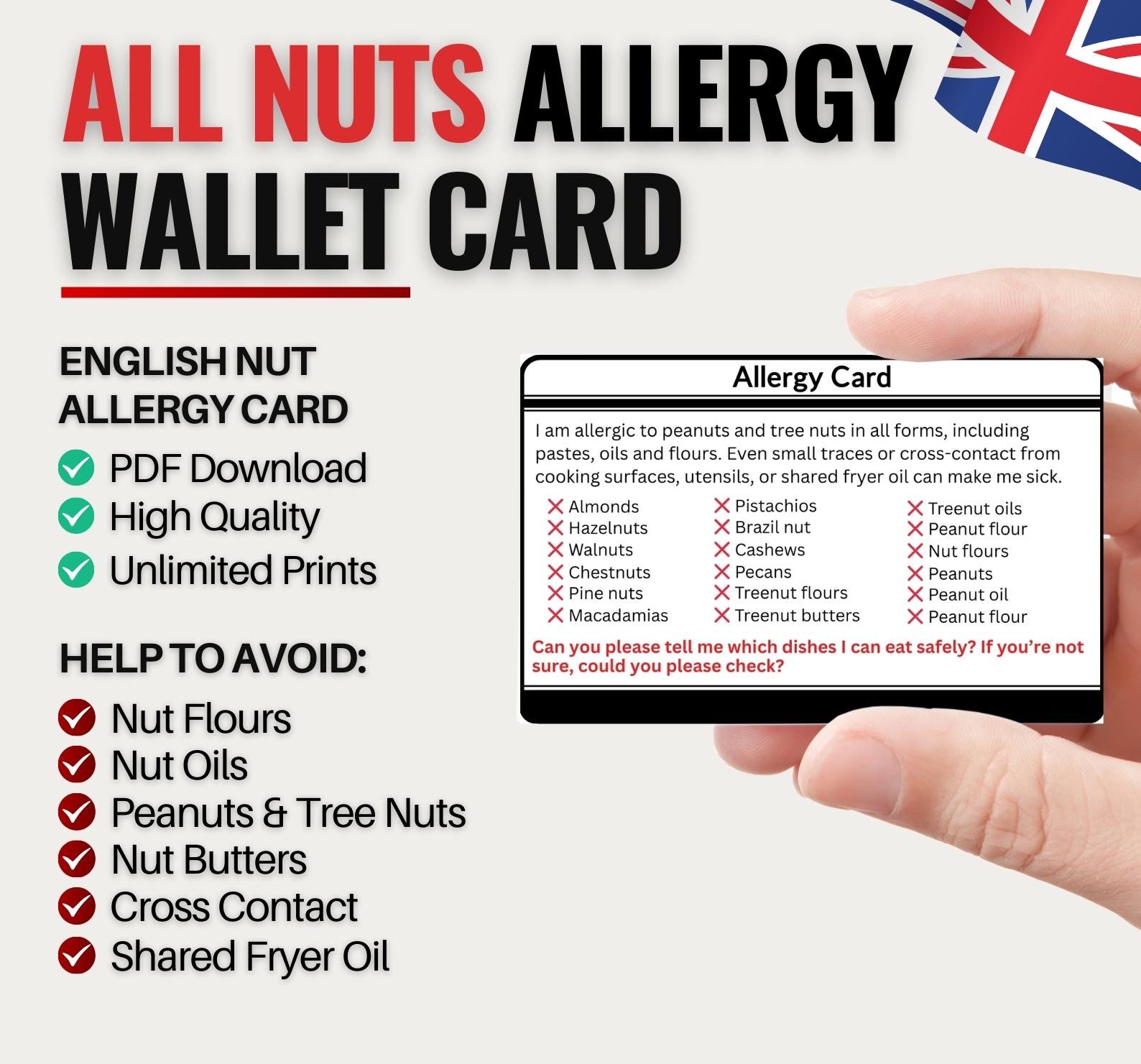 Peanut & Tree Nut Allergy Travel Card | English Nut Allergy Din...