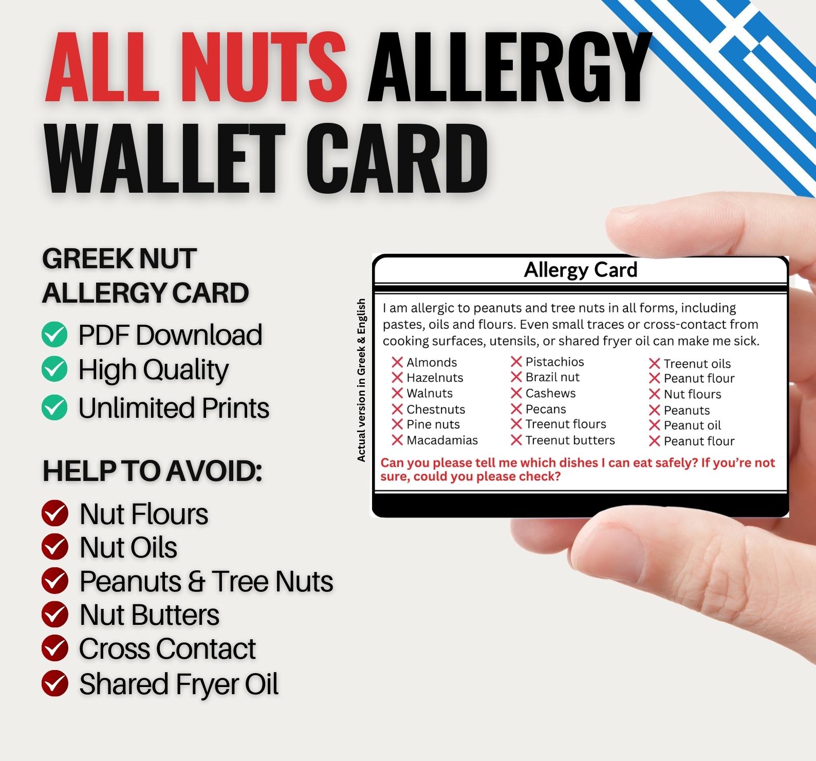 Traveling to Greece with a peanut or tree nut allergy? This Greek Nut Allergy Card makes it easier t...