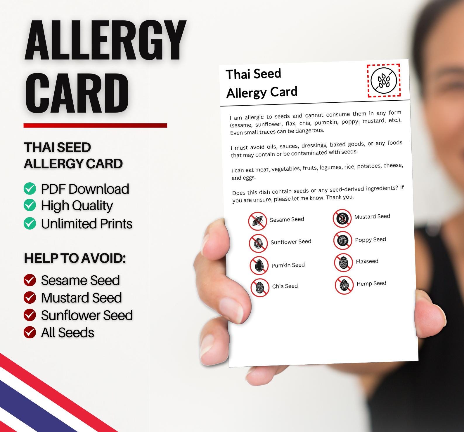 Thai Seed Allergy Card for Travel & Restaurants | Sesame and Se...