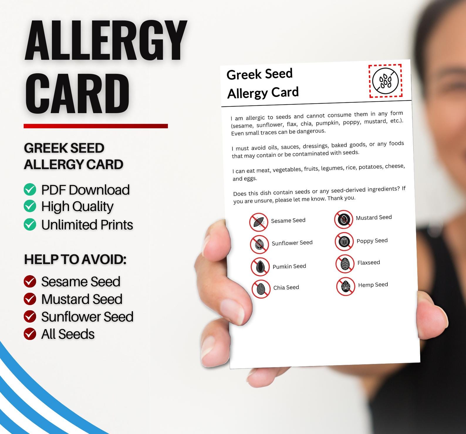 Greek Seed Allergy Card for Travel & Restaurants | Sesame and S...