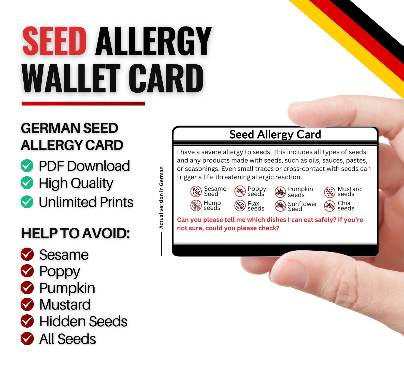 Traveling to Germany with a seed allergy? This German Seed Allergy Card is your essential tool for s...