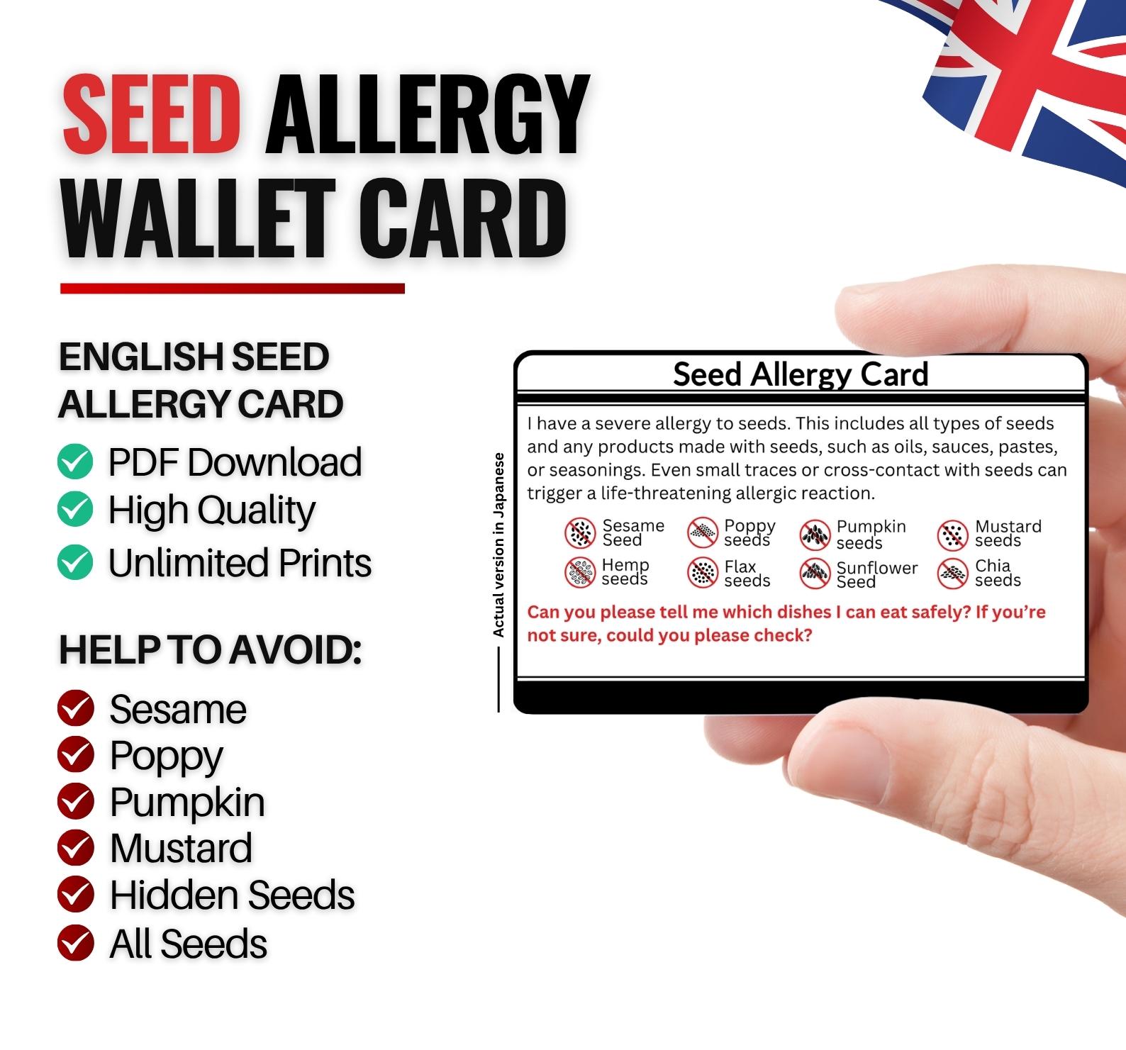 Seed Allergy Travel Card | Seed Allergy Card for Restaurants, Caf&e...