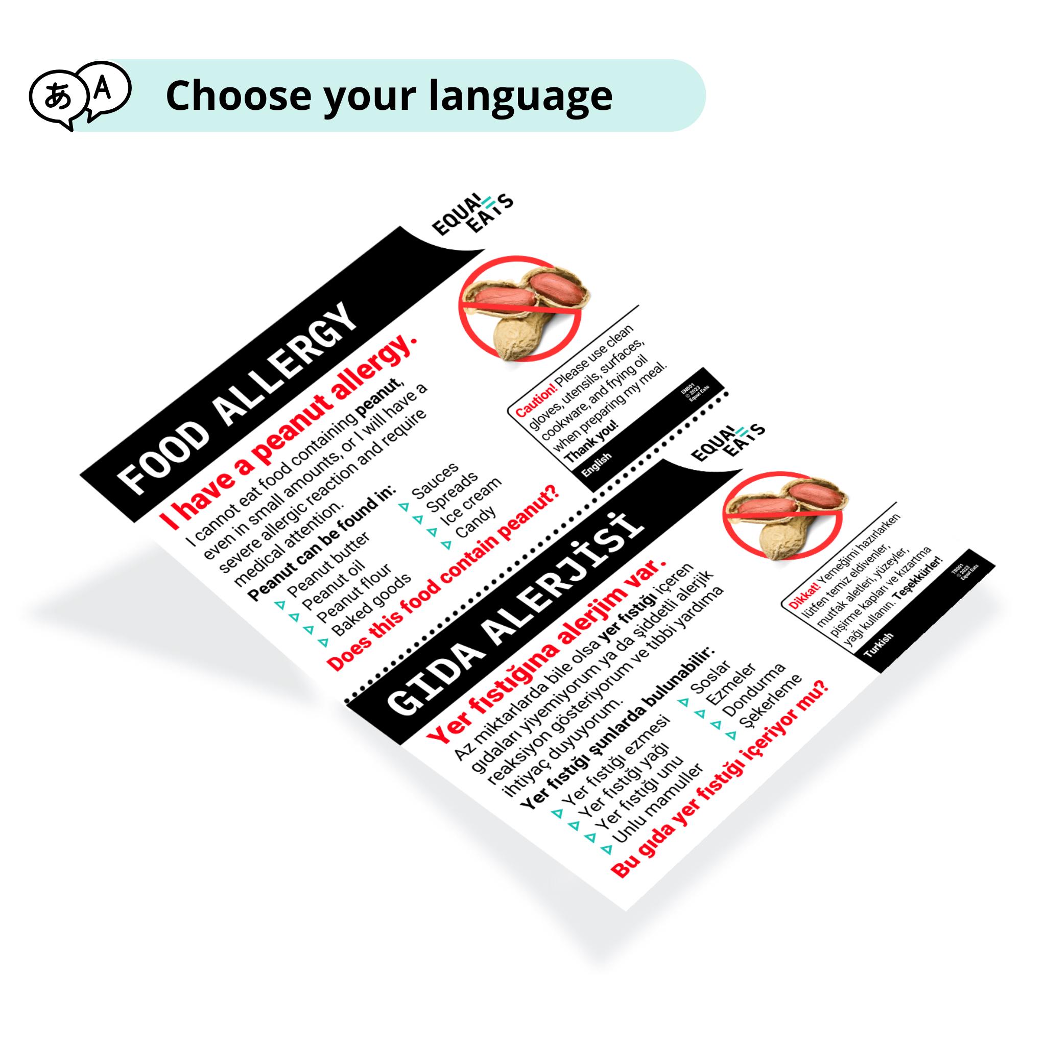 • Peanut Allergy Card - English & Turkish - Food Allergy Alert - ...