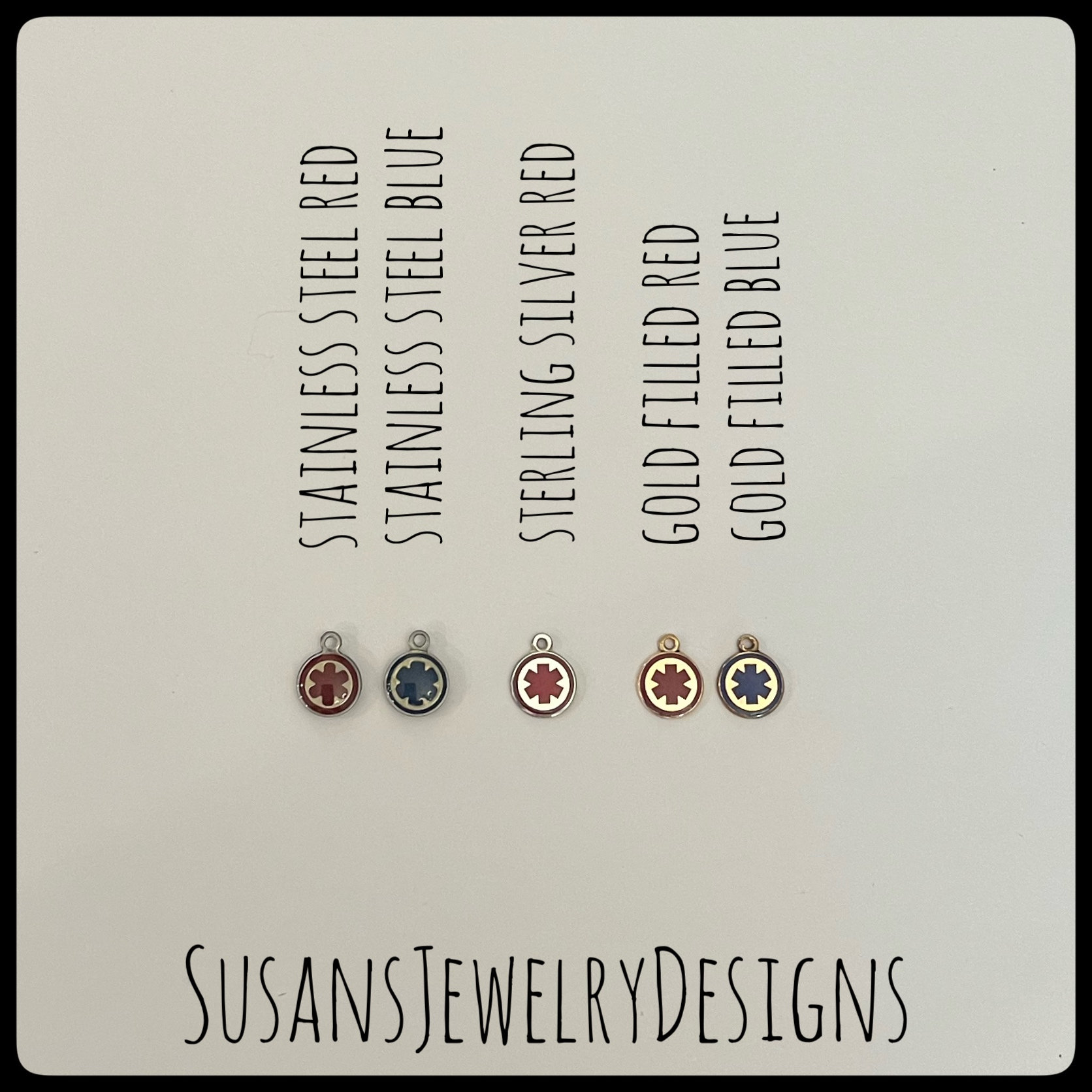 "This listing is for a medical alert charm rimmed in your metal preference. Charm comes with ei...