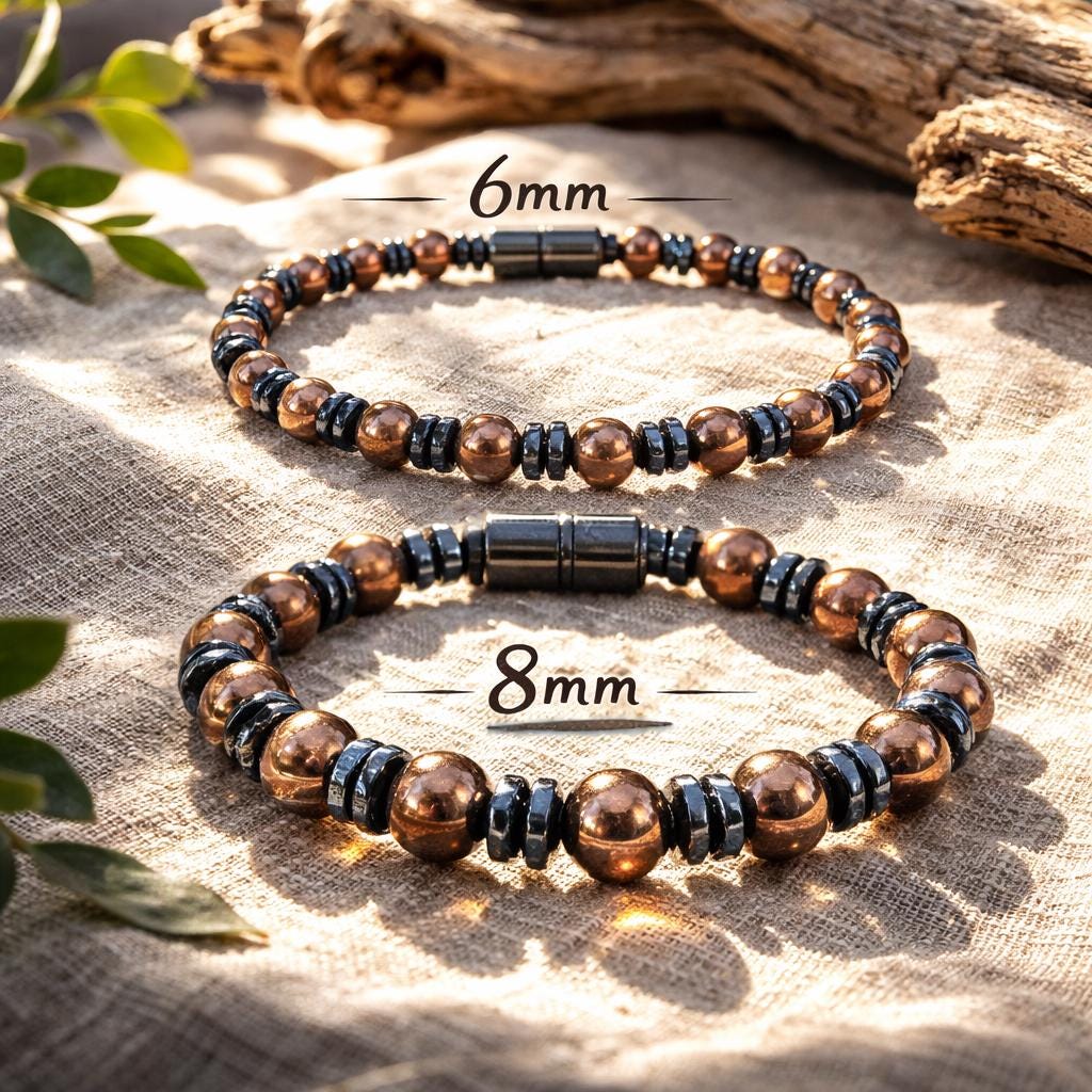 Black & Copper 8mm or 6mm Stones Magnetic Hematite bracelet/Ext...