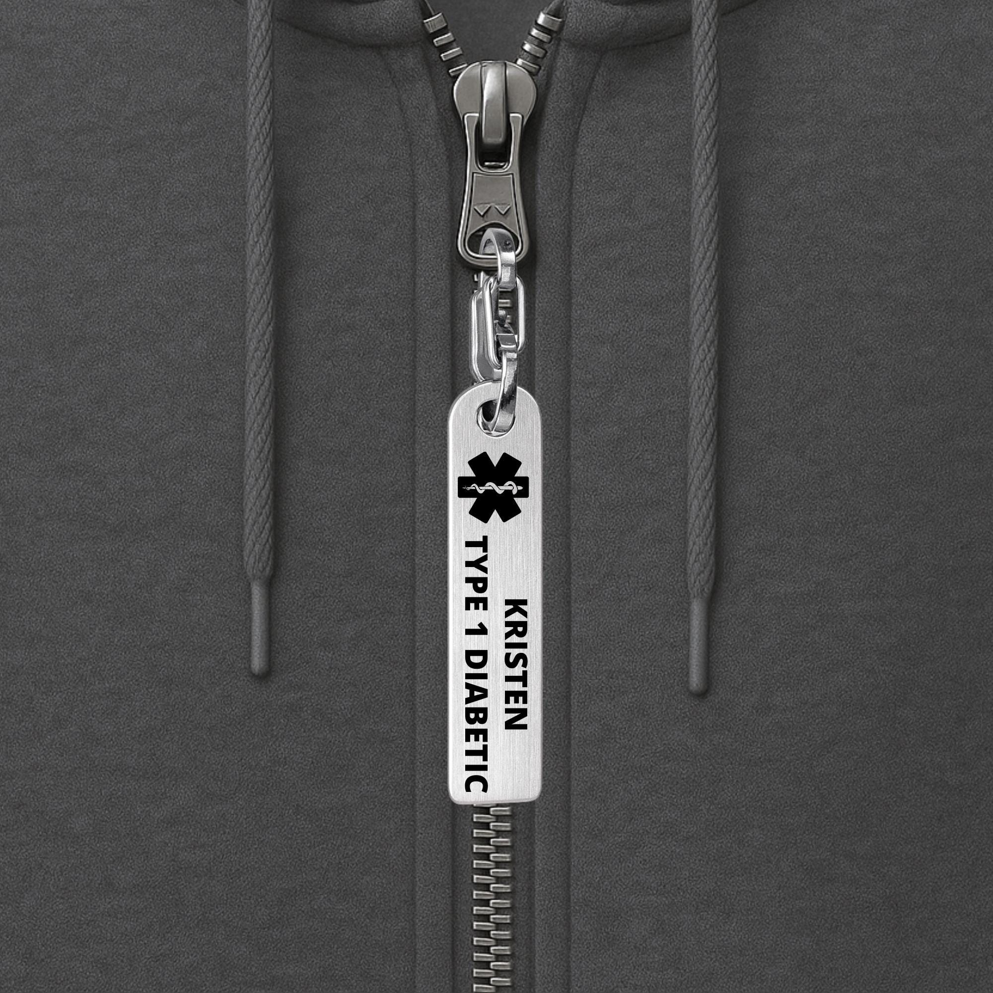 Custom Engraved Stainless Steel Zipper Pull - Medical Alert ID Tag