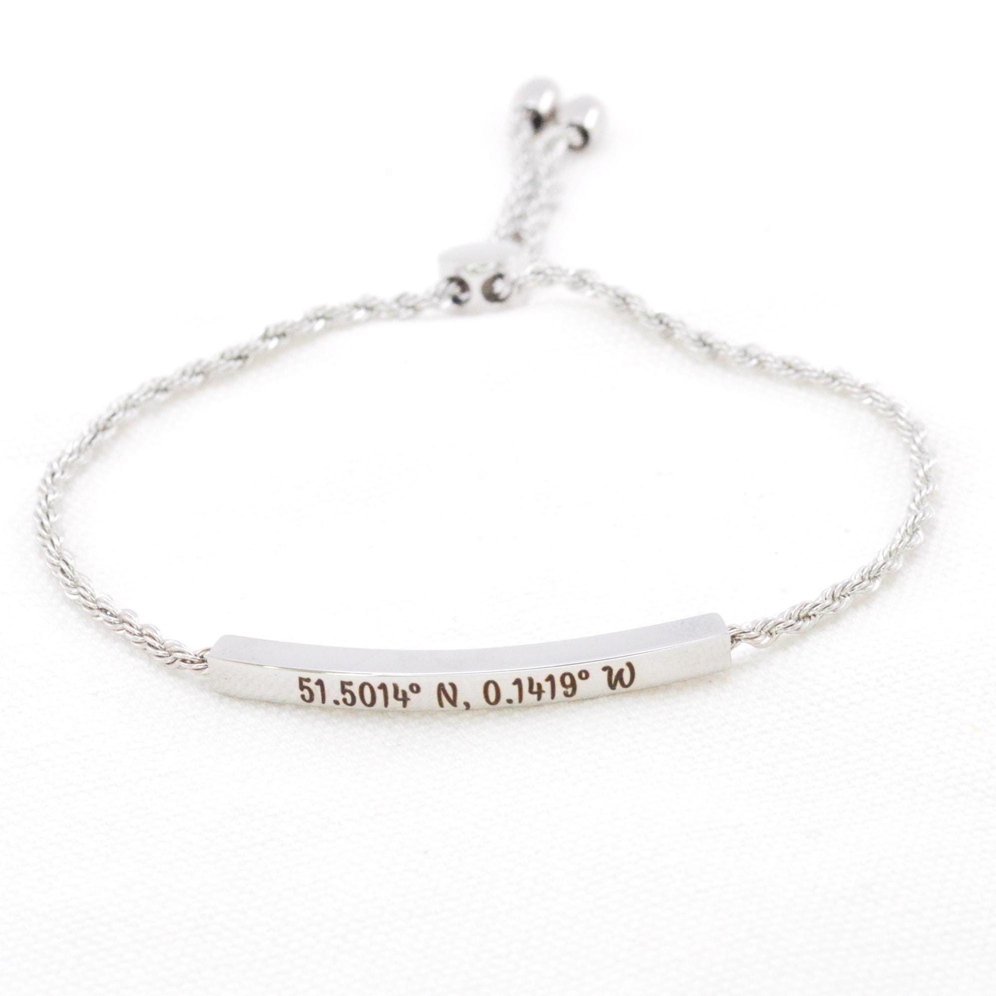 Slider Bracelet, Personalized Engraved Bar Bracelet, Coordinates Br...