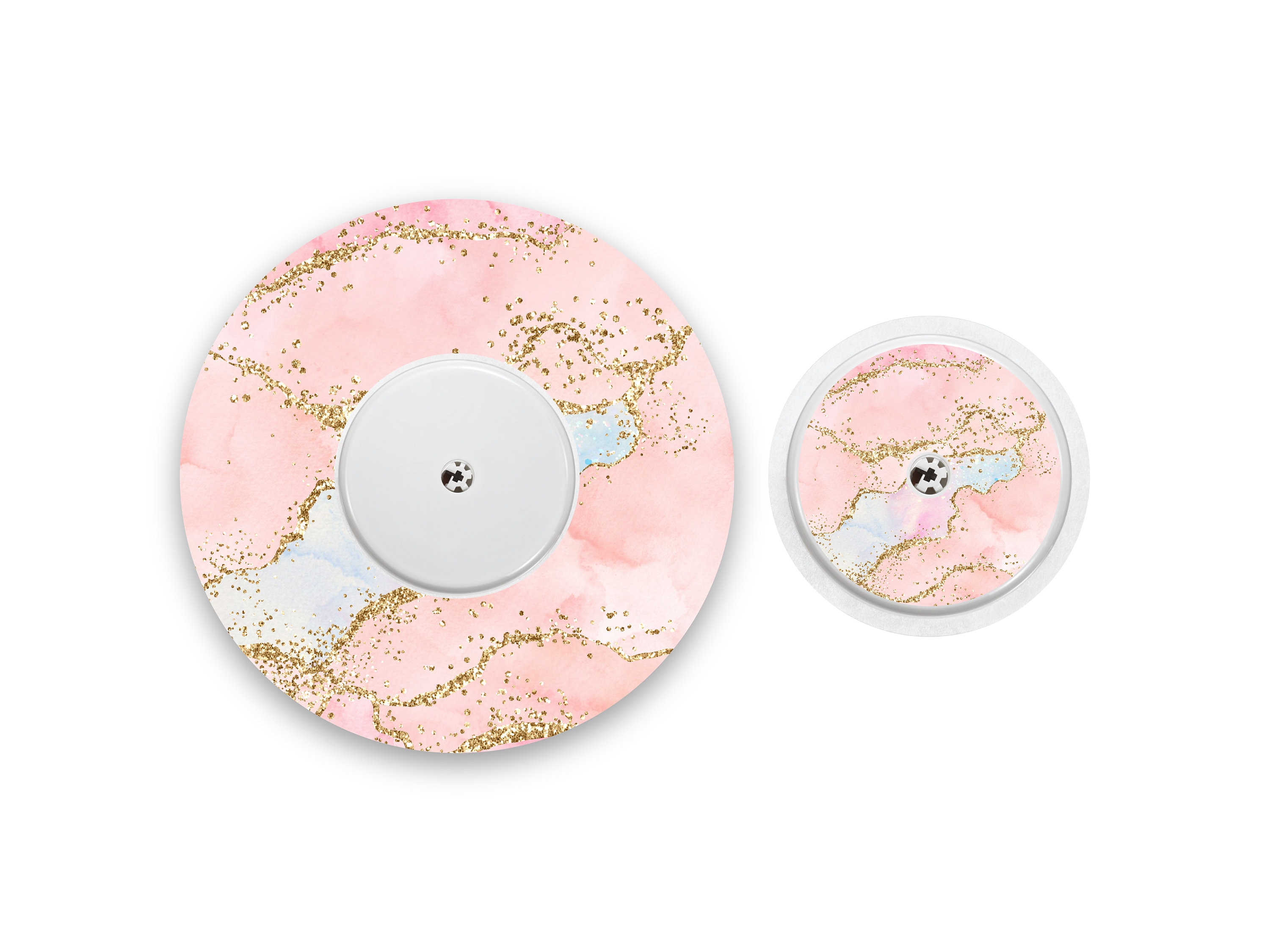 Pink Watercolour Gold Sparkle Effect Freestyle Libre 2 Diabetes Patches Matching vinyl device sticke...