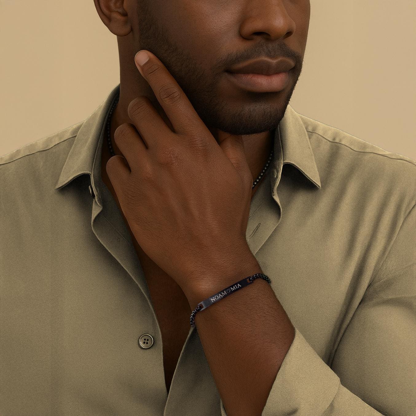 Black Bar Bracelet For Men, Men's Name Bracelet, Initial Bracelet, ...