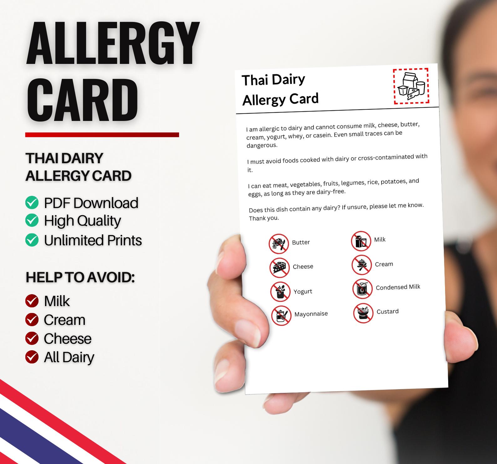 Thai Dairy Allergy Card for Travel and Restaurants | Milk & Dai...