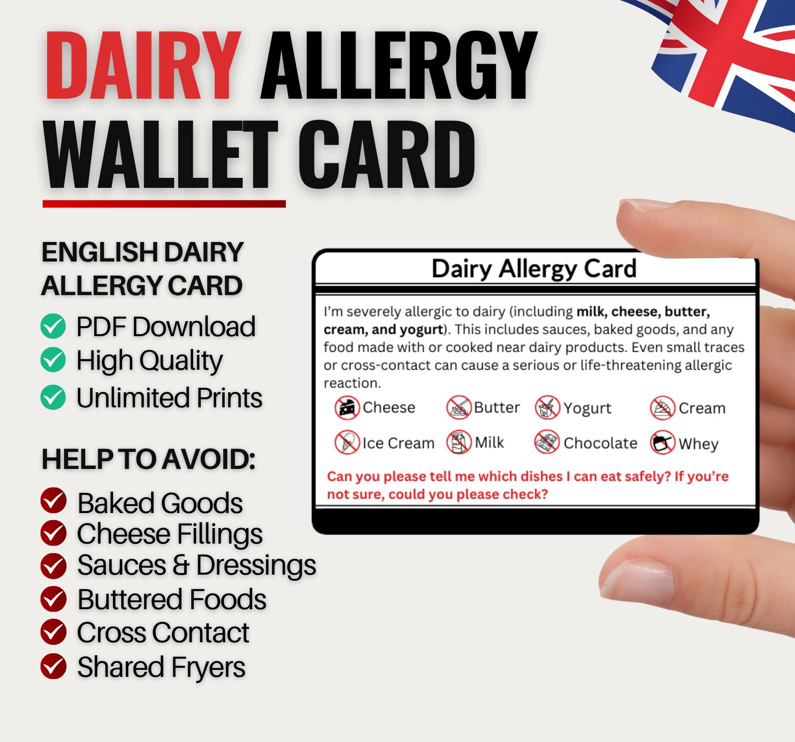 This English Dairy Allergy Card is designed to help you clearly and confidently communicate your die...