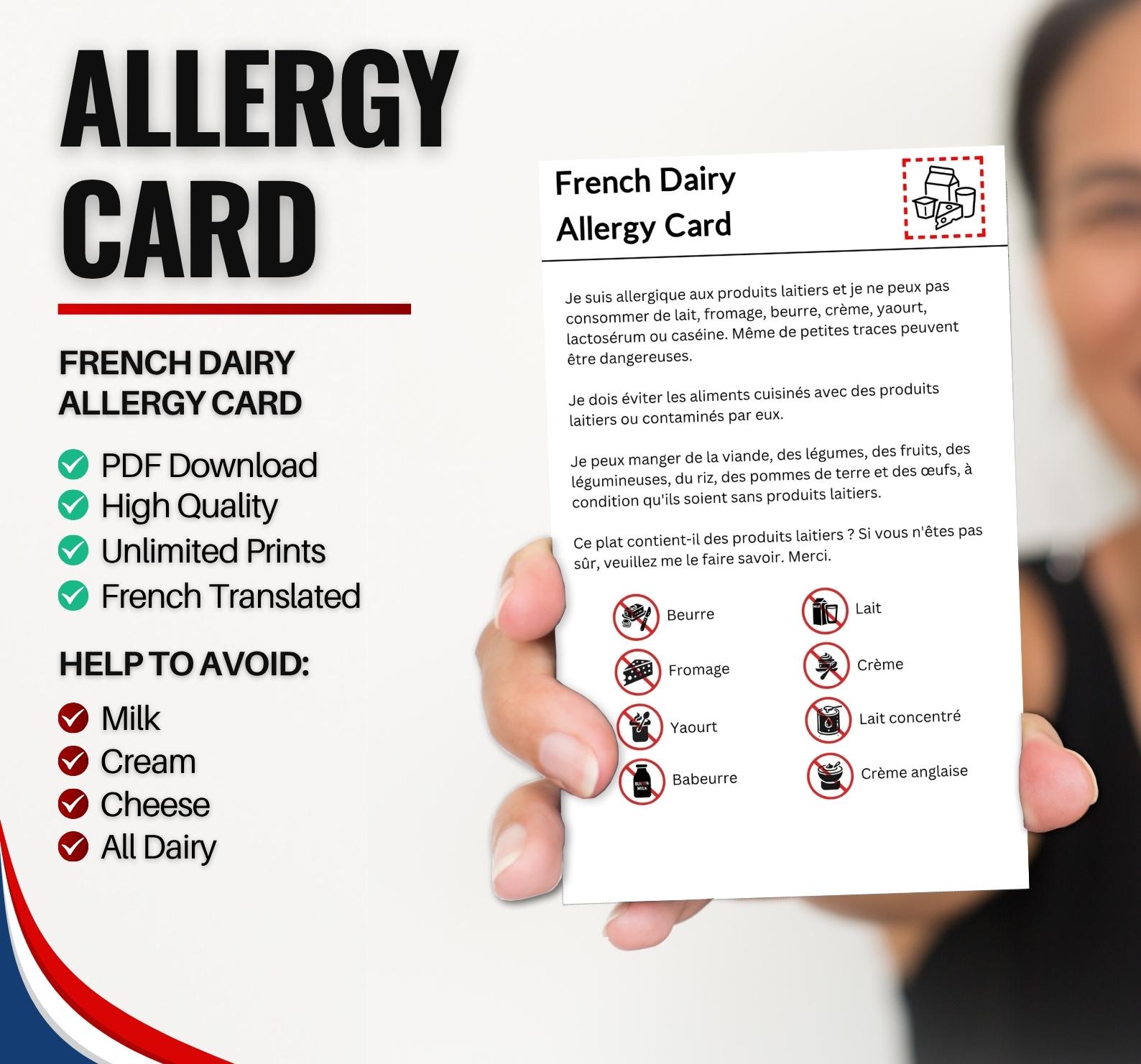 French Dairy Allergy Card for Travel & Restaurants | Milk and D...
