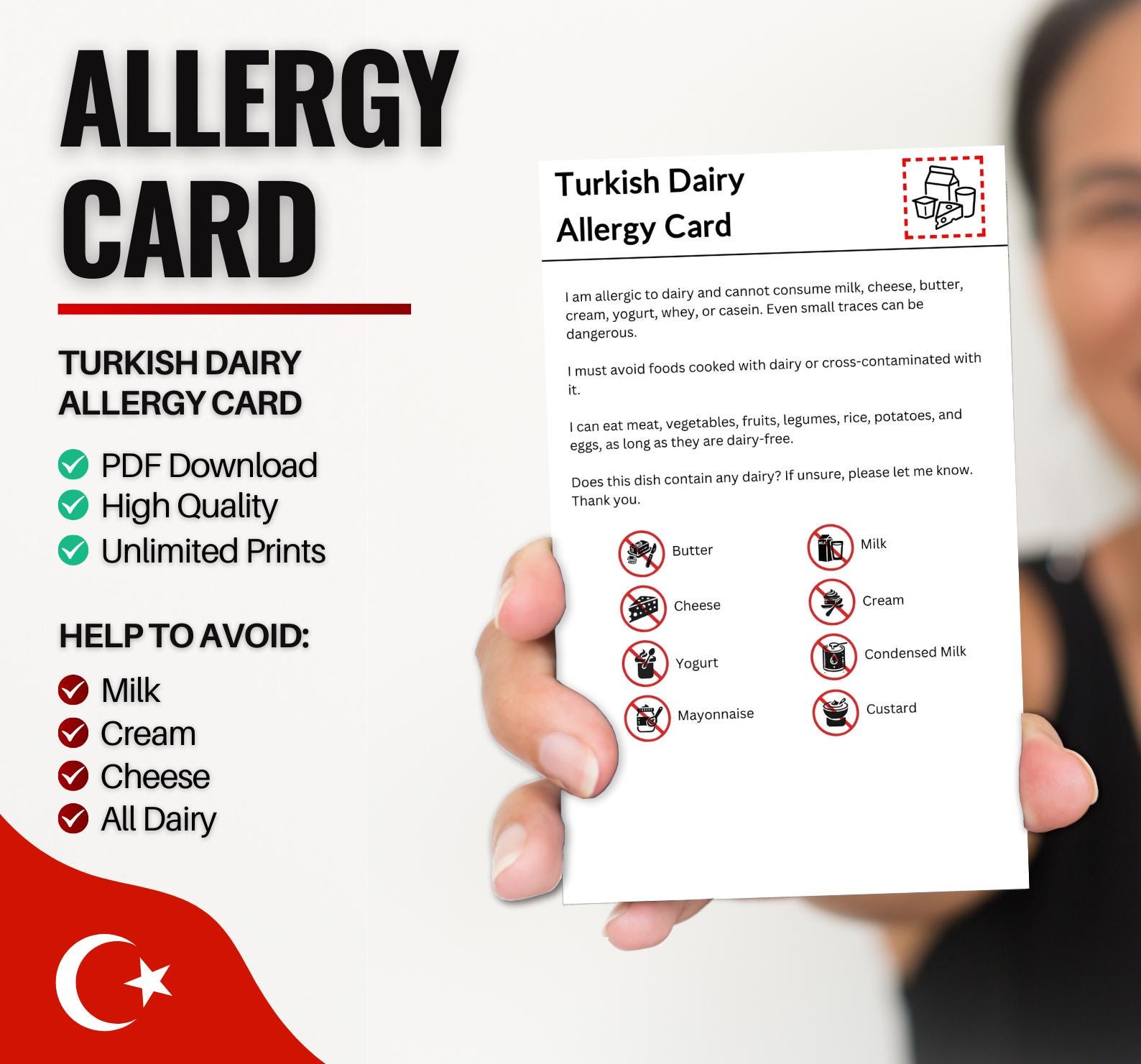 Turkish Dairy Allergy Card for Travel and Restaurants | Milk & ...