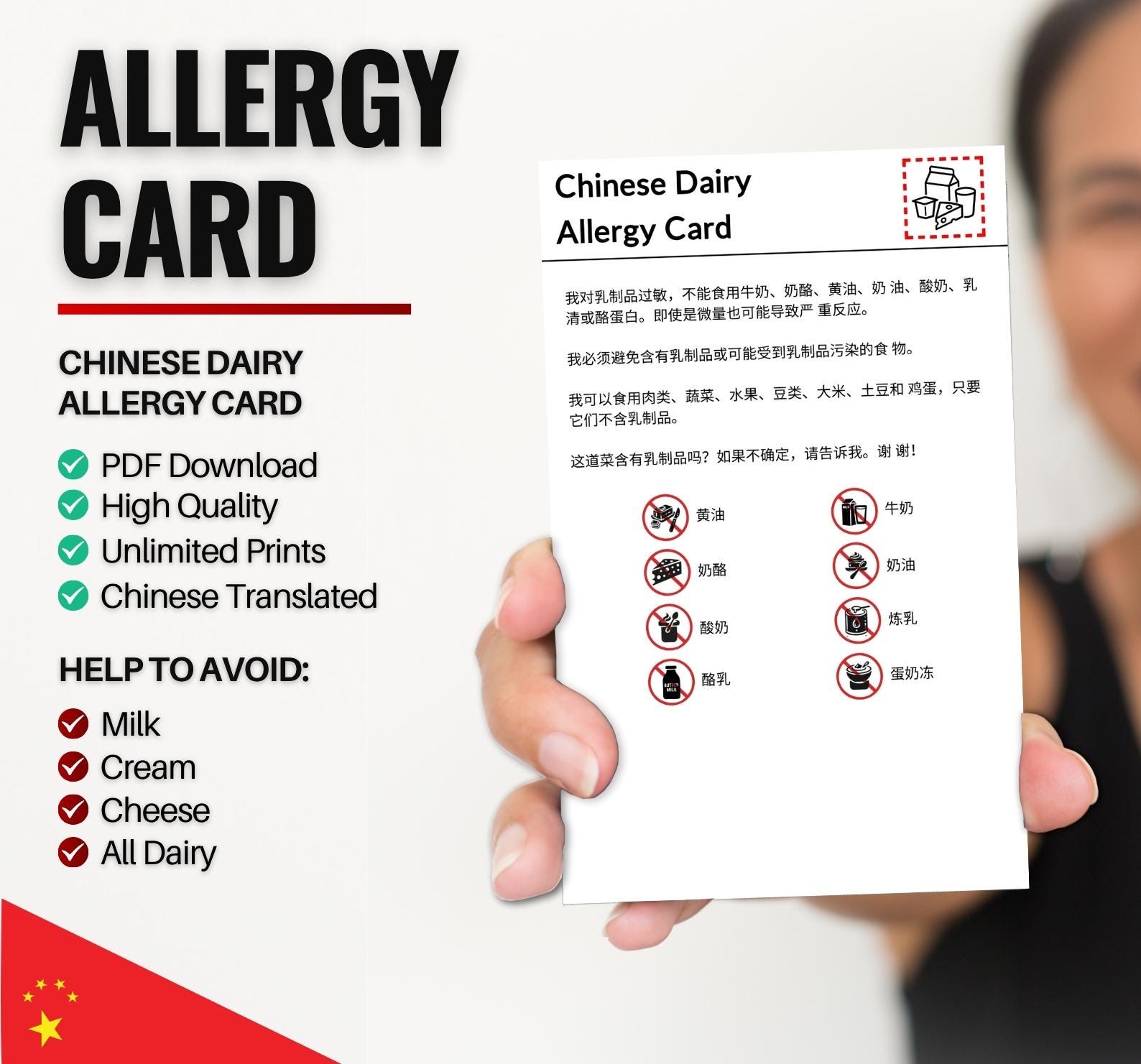 Chinese Dairy Allergy Card for Travel & Restaurants | Milk and ...