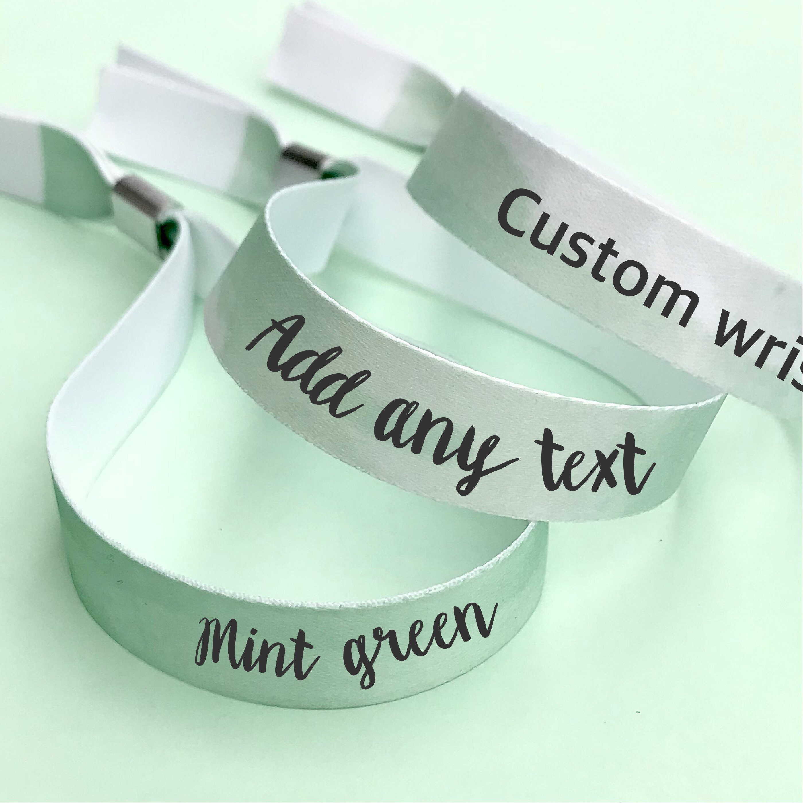Personalised fabric wristbands | Mint green watercolour painting de...