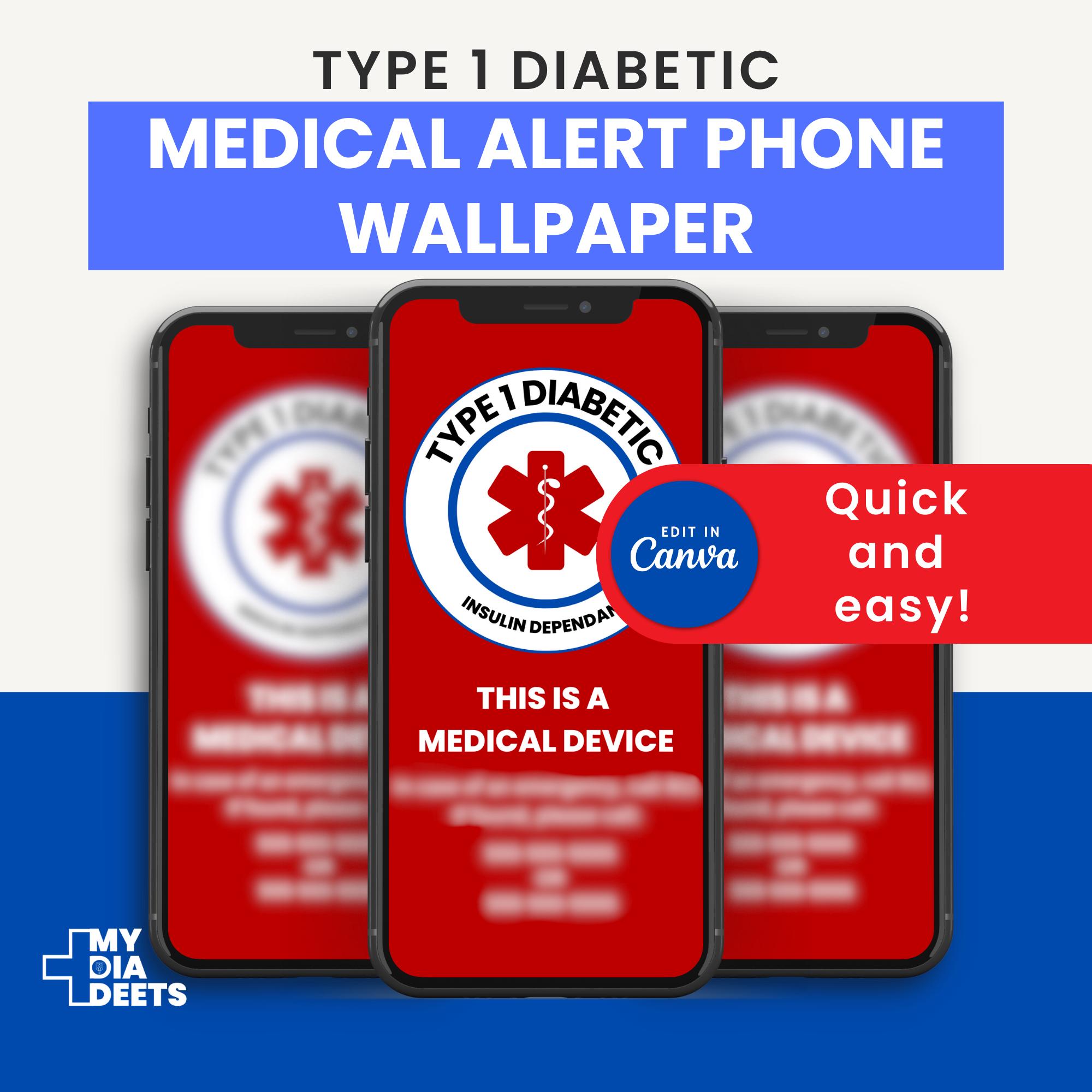 Type 1 Diabetic Medical Alert Phone Wallpaper (Canva Editable, Digi...