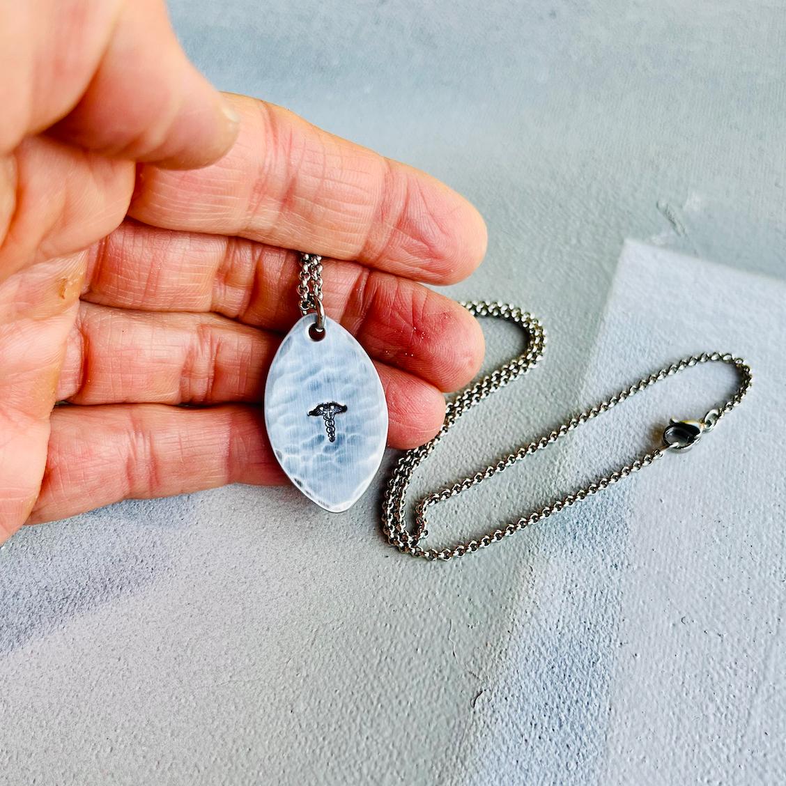 Hand Stamped Medical Alert Necklace: Stainless Steel Leaf Charm