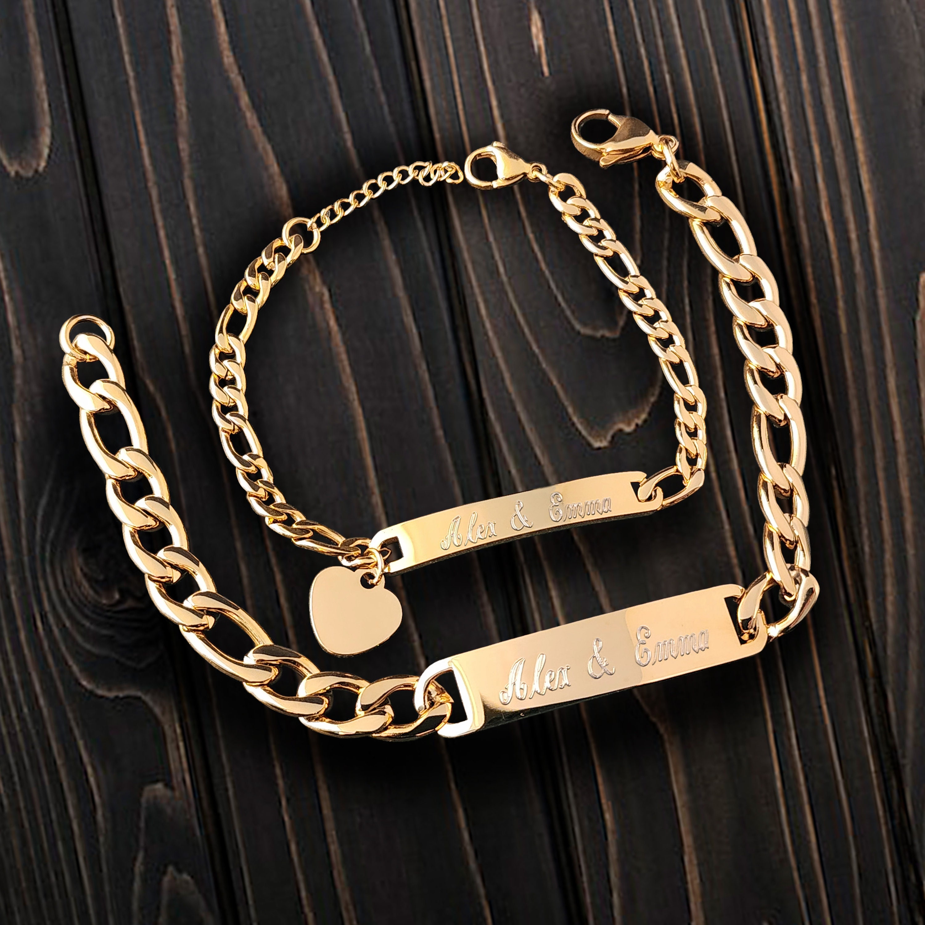 "Introducing our exquisite 18k gold-plated stainless steel ID bracelet set, perfect for both hi...