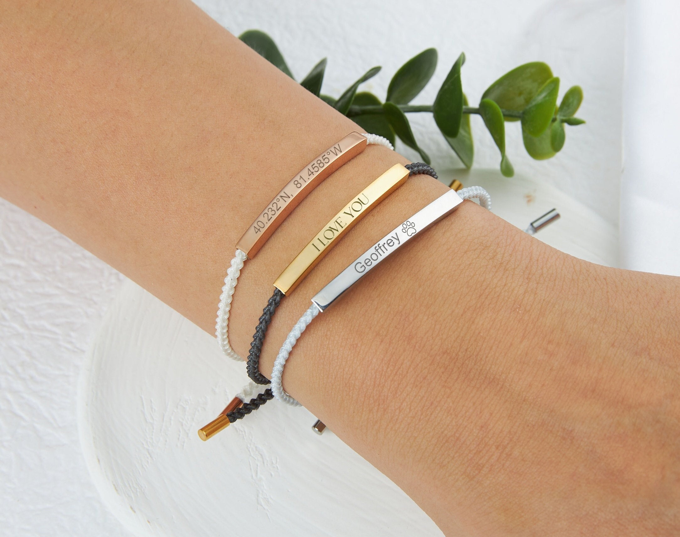 This hand braided rope bracelet can be engraved with anything you want like name/text/date etc. The ...