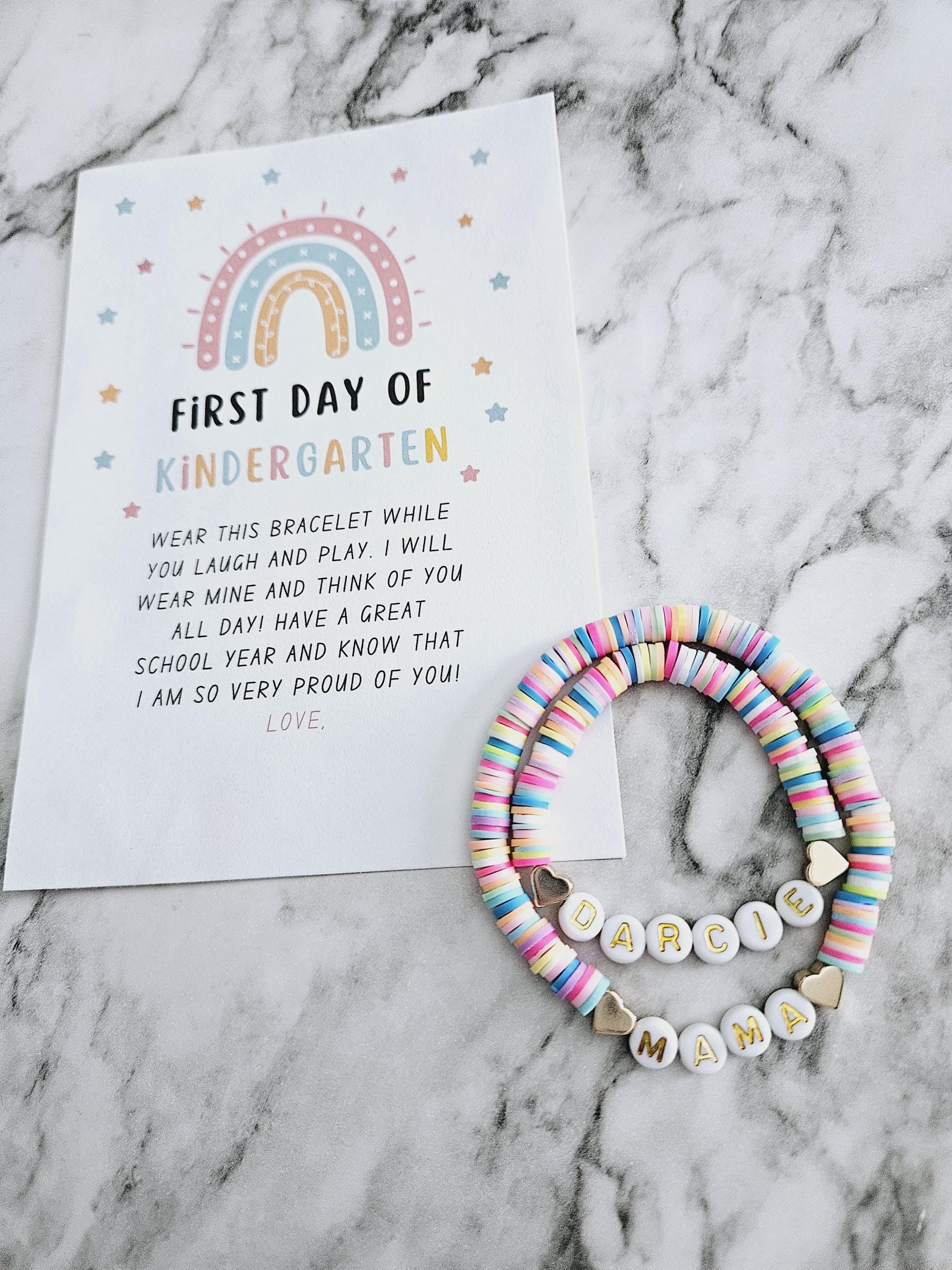 "matching first day of school, Kindergarten, pre-k, ect bracelets with note Set of 2 one mama (...