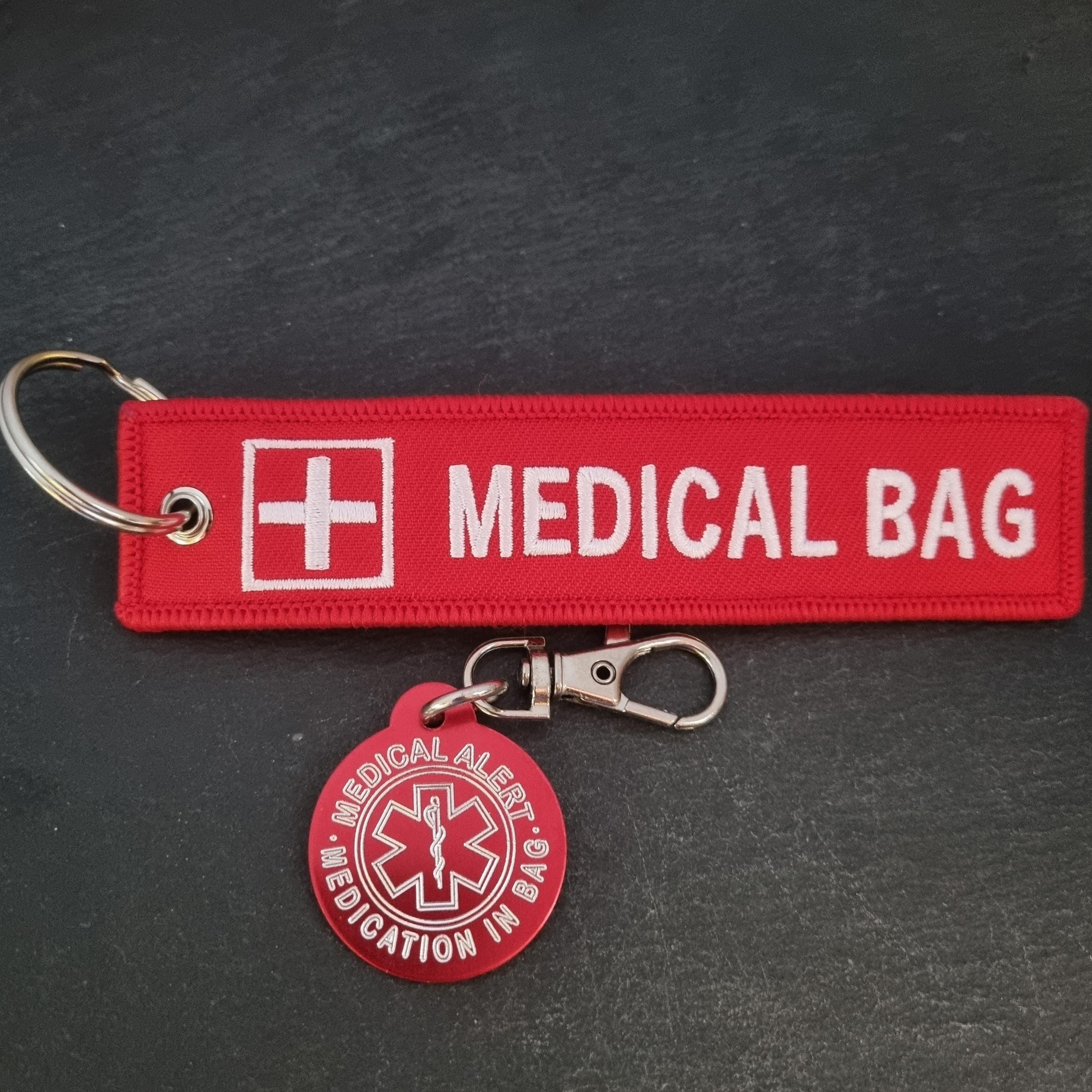 Emergency Medical Alert Medical Bag + Red Aluminum Medication in Bag 32mm - Crucial medical article ...