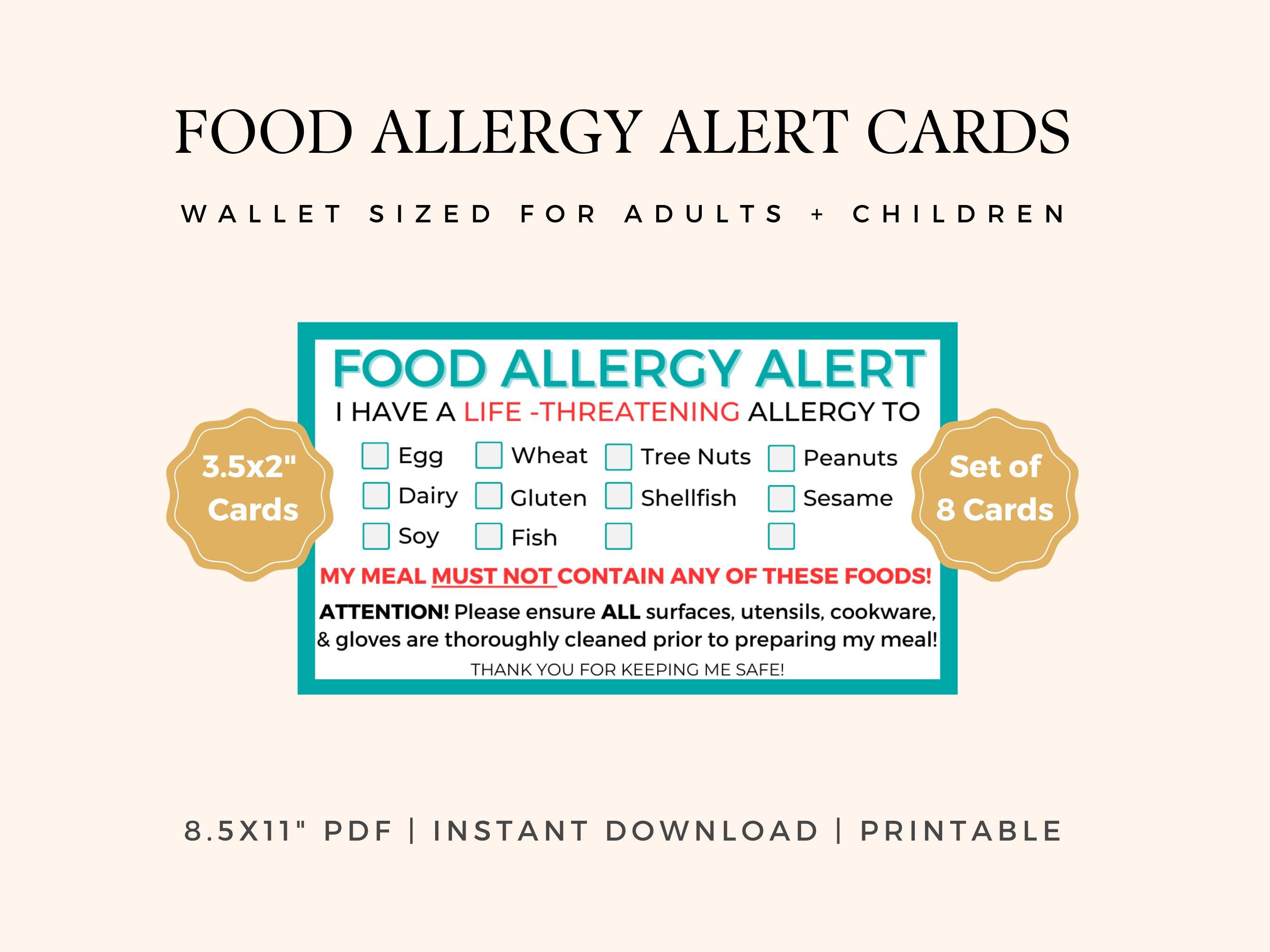 Food Allergy Alert Cards for Adults & Kids (Printable PDF)