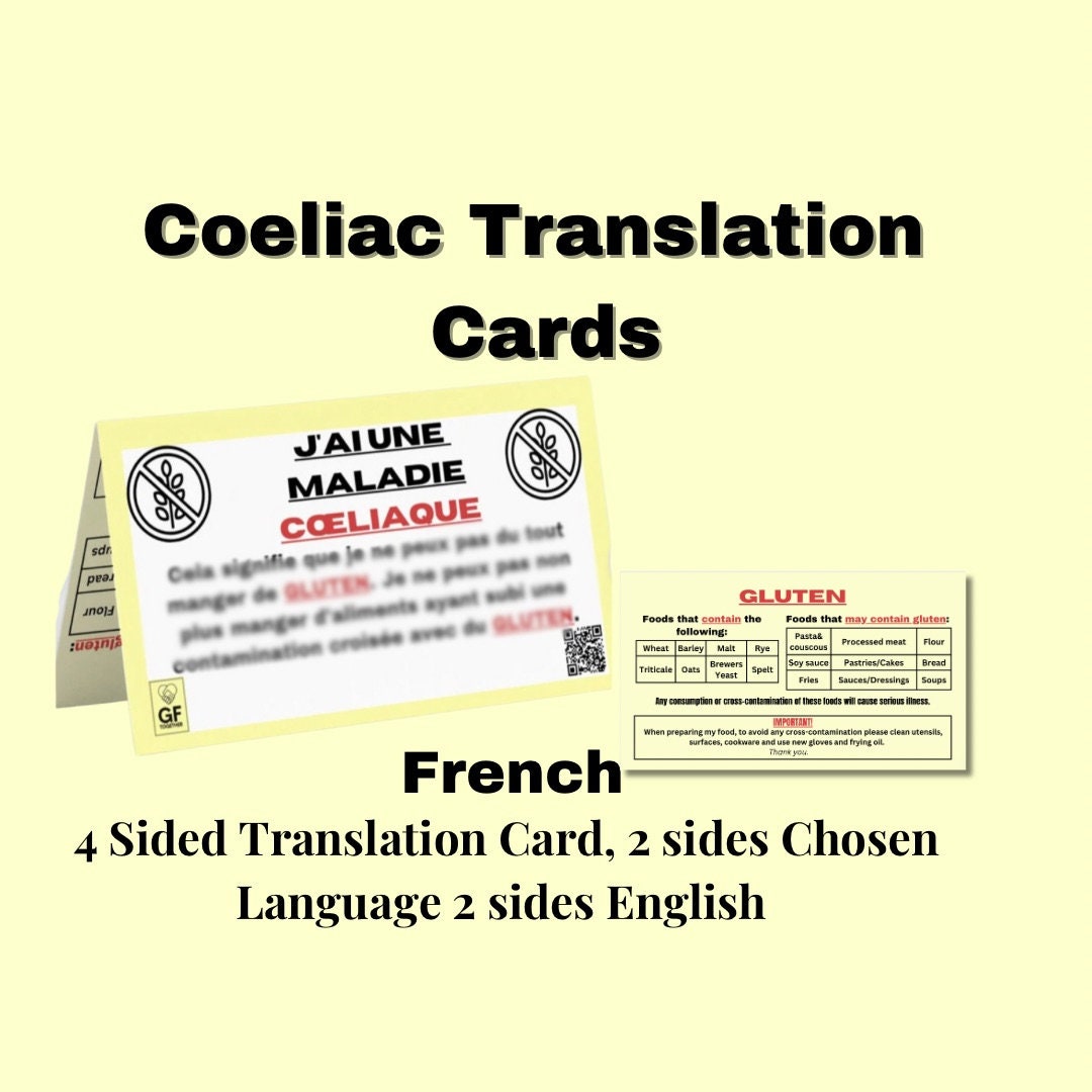 FRENCH Coeliac Disease Travel Translation Card, Food allergy card, ...