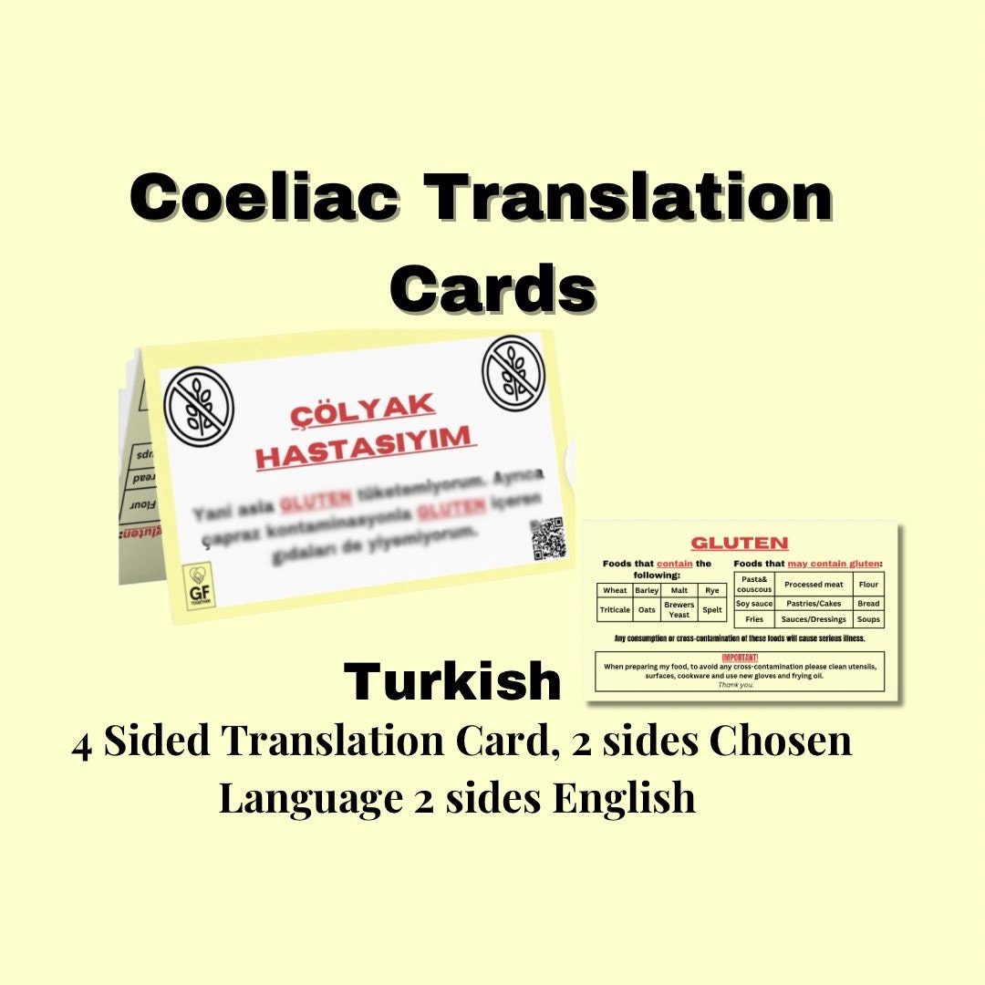 TURKISH Coeliac Disease Travel Translation Card, Food allergy card,...