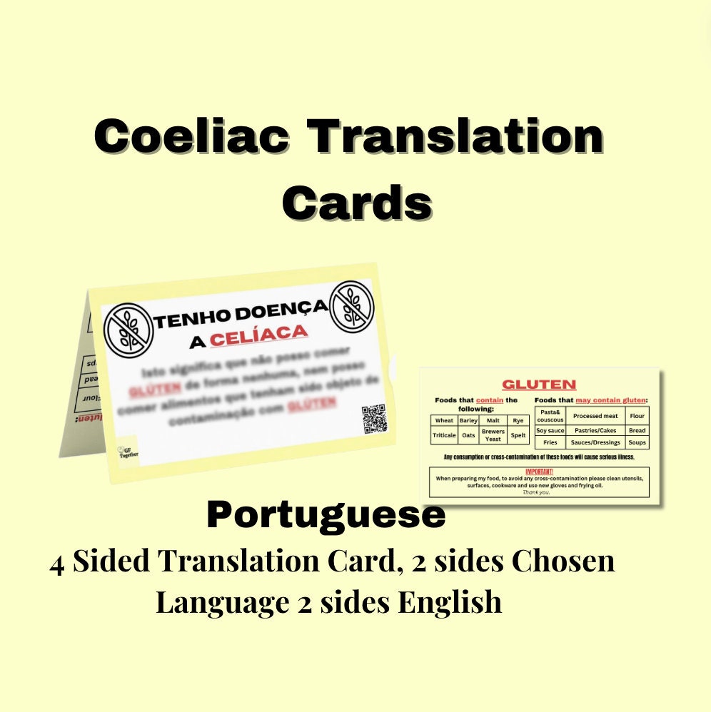 PORTUGUESE Coeliac Disease Travel Translation Card, Food allergy ca...