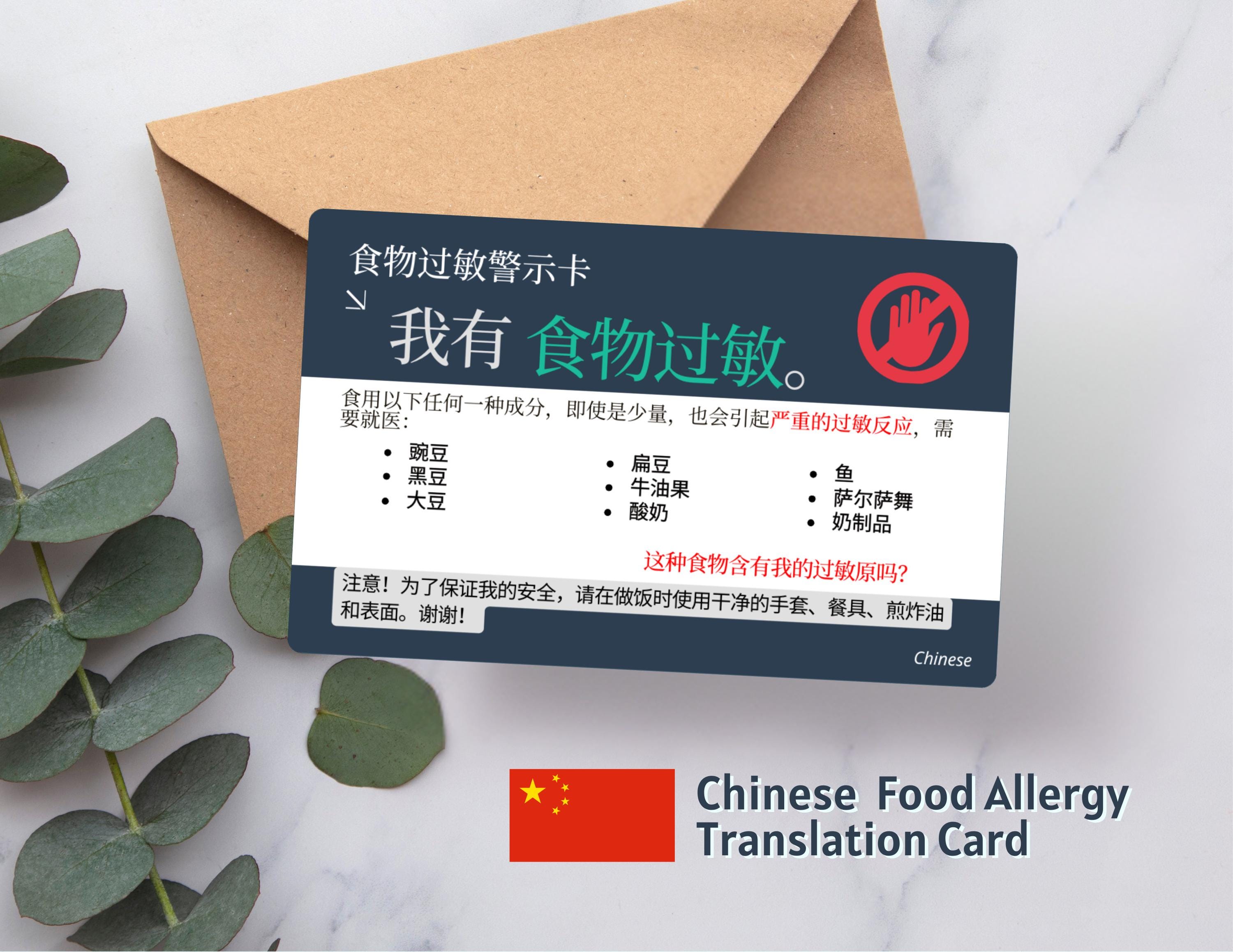 "Personalized Food Allergy Alert Card - Bilingual (English + Your Chosen Language) This custom ...