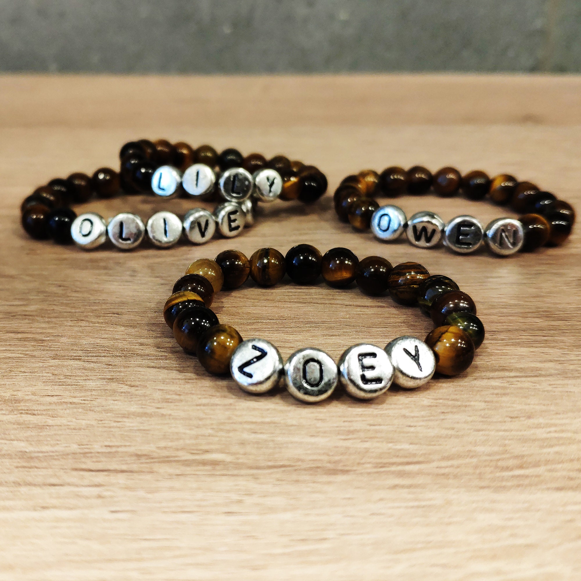 Kids Name Bracelet, Tiger eye Bracelet Kids, Personalized Name Bead...