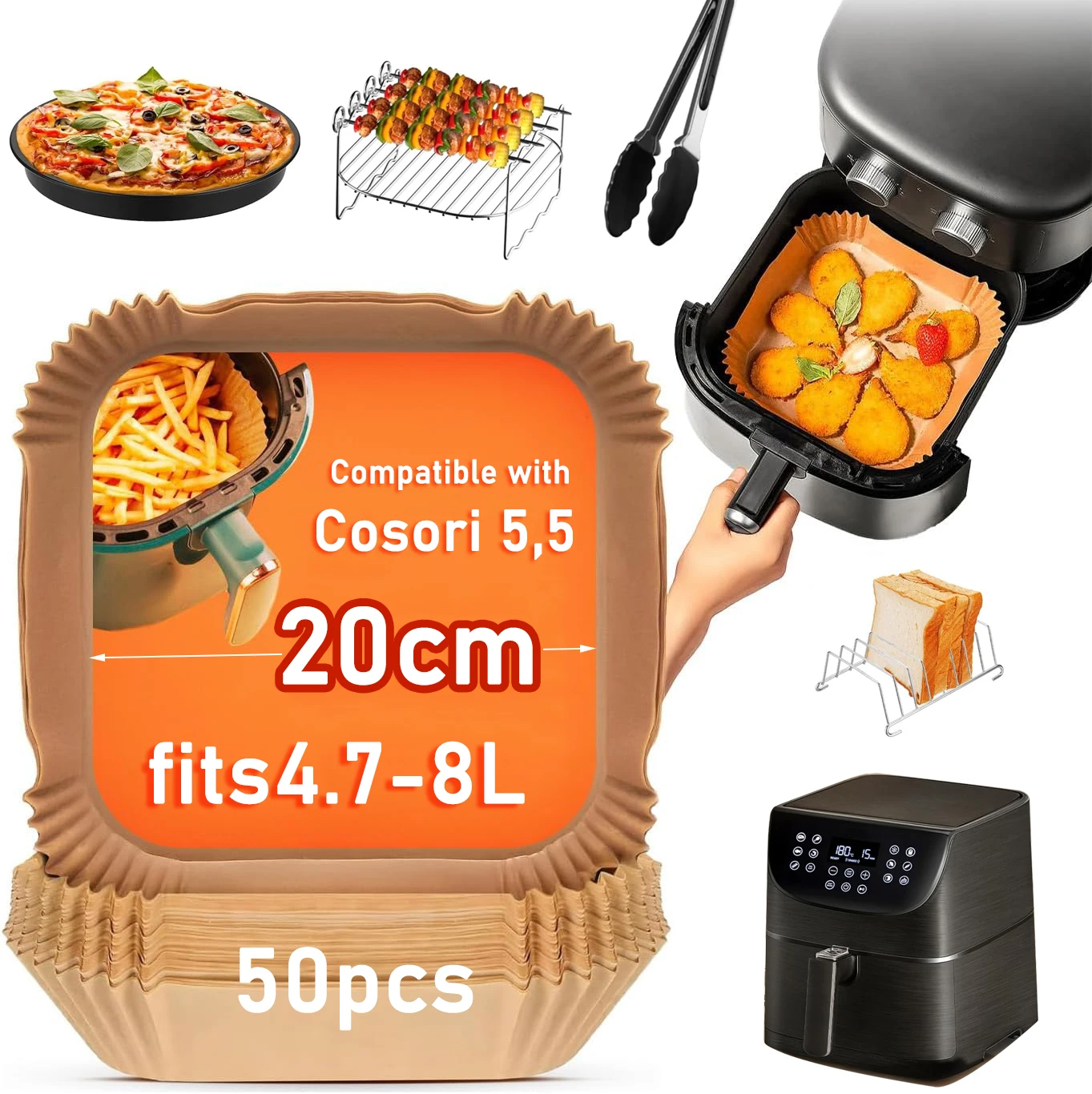 Paper for Air Fryer 20cm Square Air Fryer Accessories for Ninja, Cosori 5.5L, 6L,4.7L,6.5L Oil-Free ...