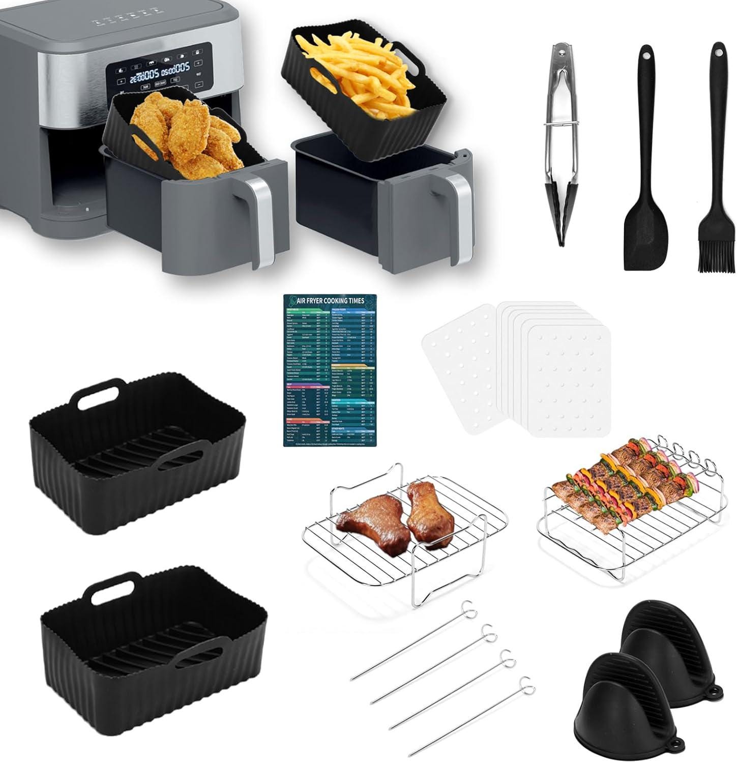 Complete Air Fryer Accessories Set - Tanvi 16 PCS air fryer accessories set Includes 2x Reusable sil...