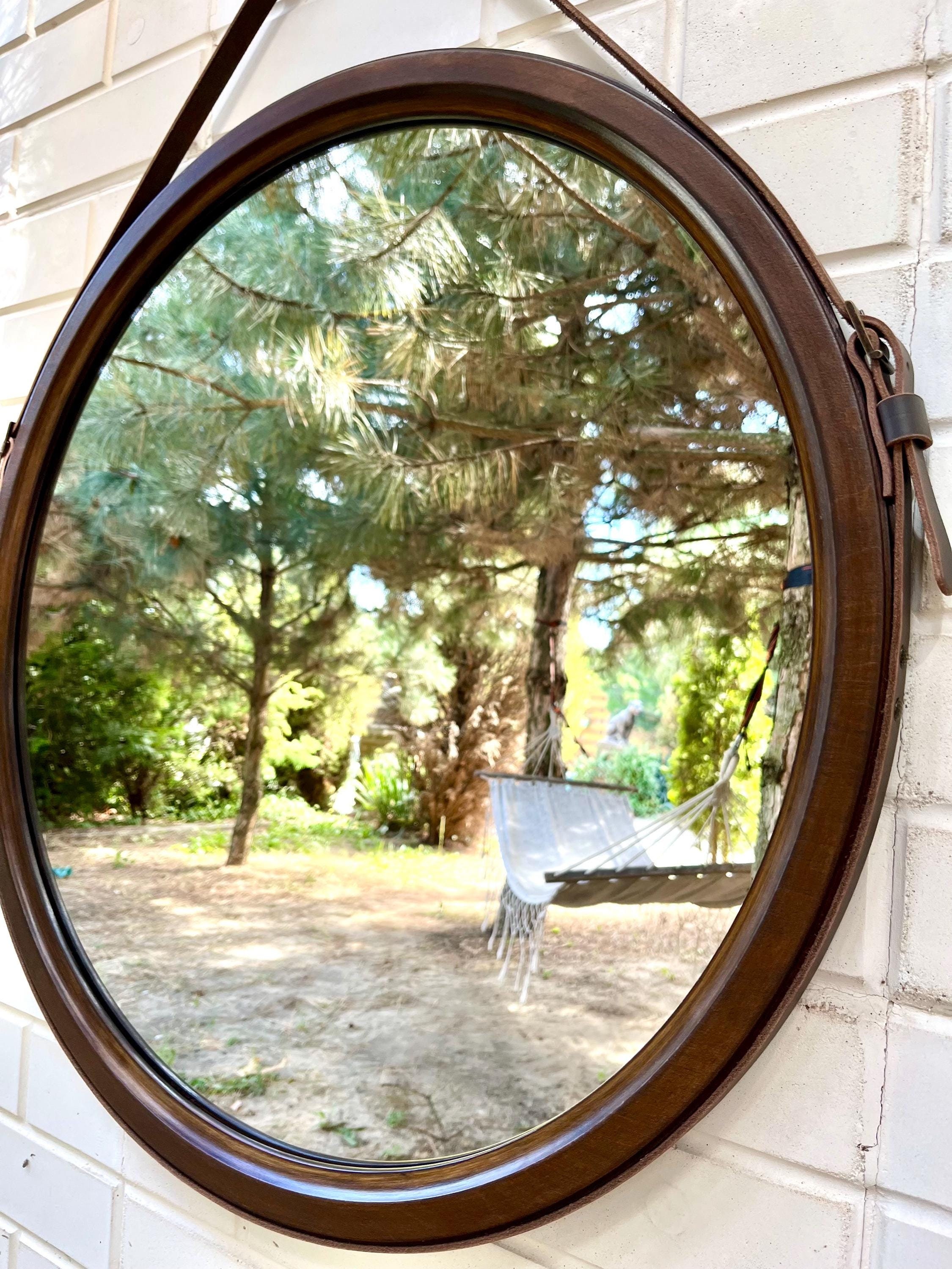 Brown round mirror, Bathroom leather mirror, Decorative wall hangin...