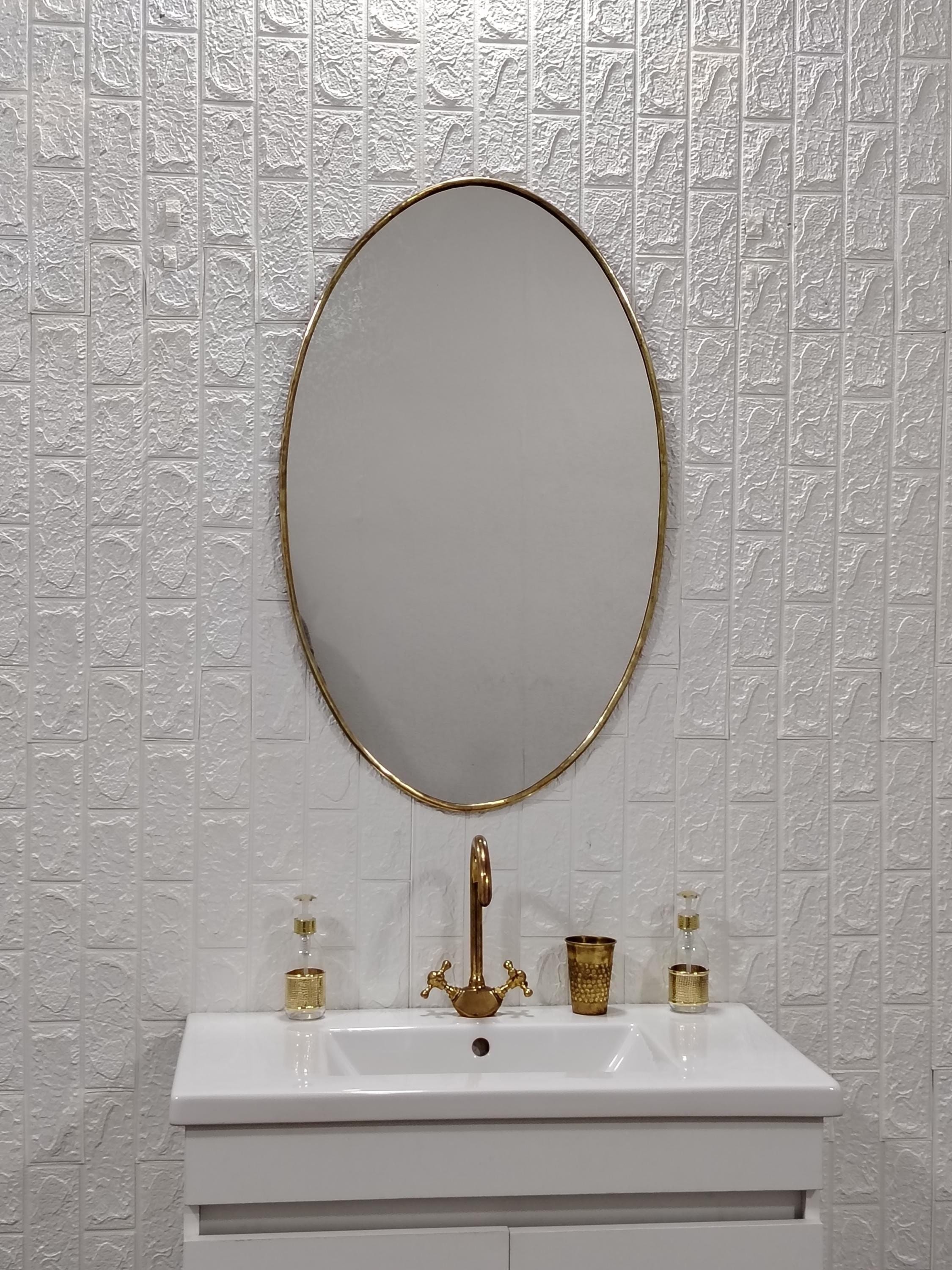 Oval Antique Brass Mirror - Wall Mirror, Handmade Mirrors, Oval Mir...