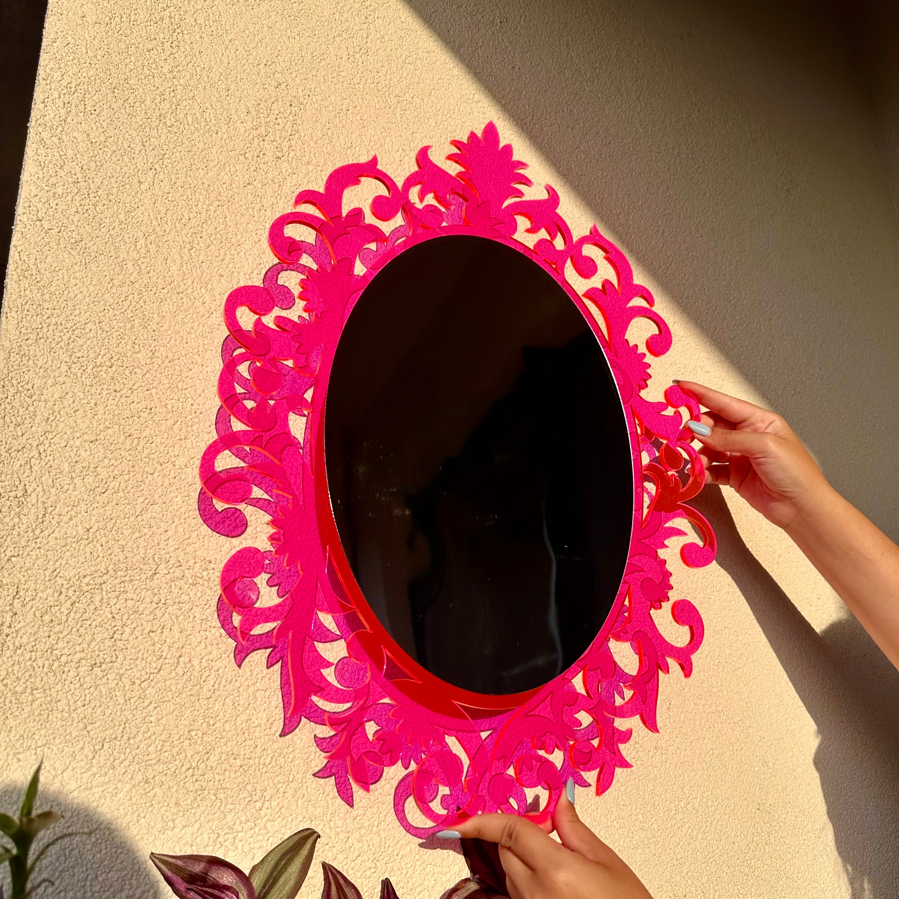 Vintage-Style Acrylic Mirror | Fluorescent Pink Mirror, Boho Chic H...