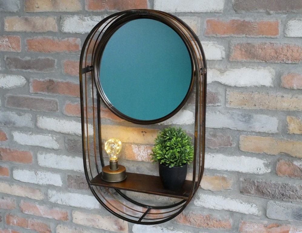 Copper & Black Industrial Swivel Mirror With Shelf Wall Mounted...