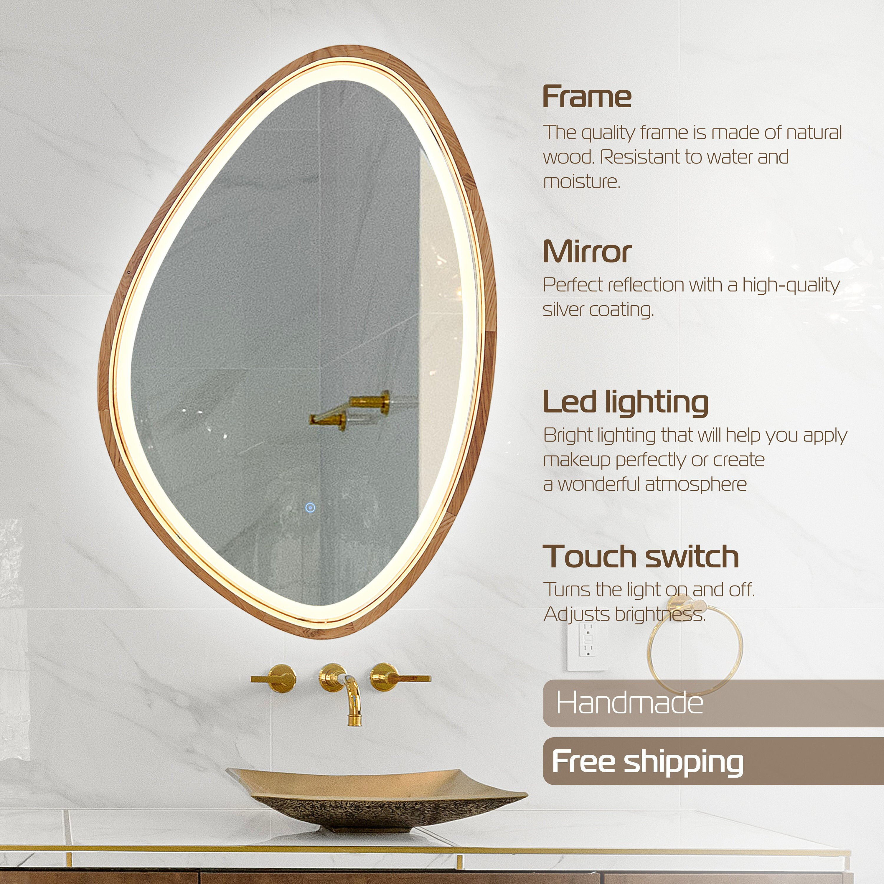 Irregular Mirror, Asymmetrical LED Mirror, Led Vanity Mirror Irregu...