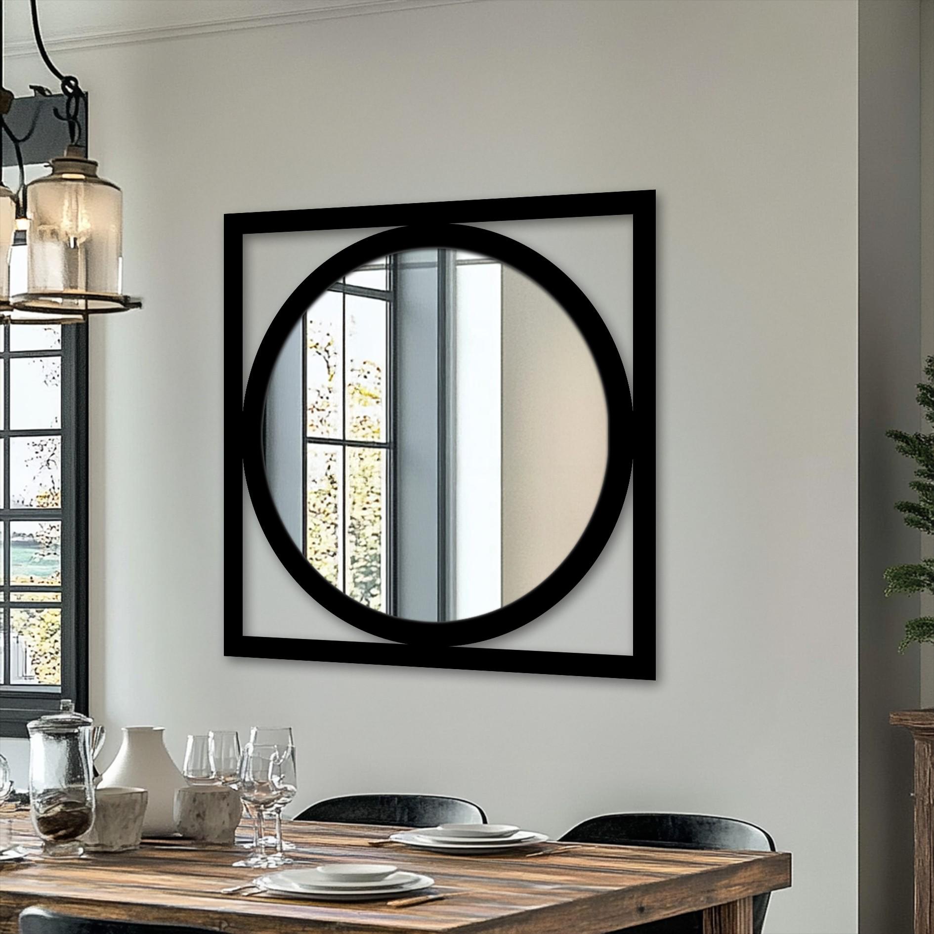 Modern Geometric Square Frame Wall Mirror, Black Minimal Round Cent...